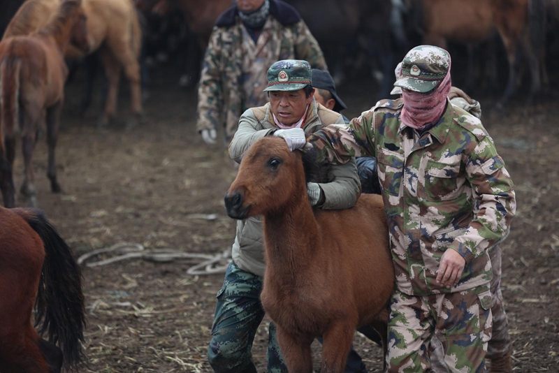近日,祁连山脉冷龙岭北麓的大马营草原上,山丹马场马产业基地的牧马人正抢抓秋末马驹生长关键期,集中开展液氮烙印工作,为新生马驹烙上专属“身份标识”,为后续良种谱系追踪、科学养殖管理夯实基础。