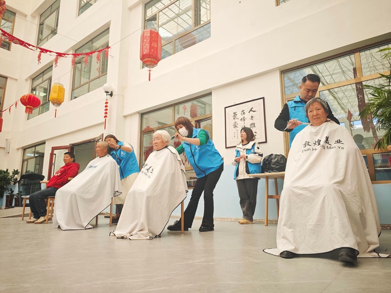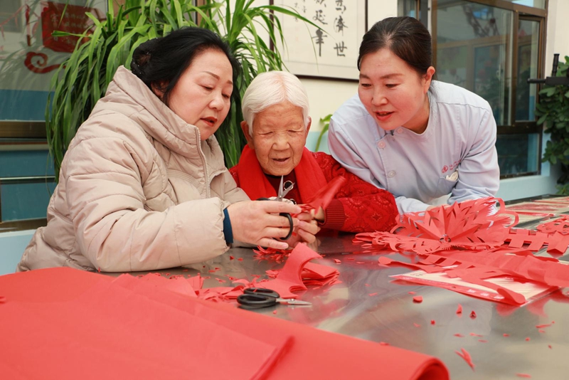 活动设置七大实践服务项目,全方位、多角度满足老年人生活需求与情感期待,将关爱落细落实到心坎上。“时光留影・定格美好”环节,志愿者小徐蹲着帮70岁的刘爷爷整理衣领:“爷爷,头稍微抬一点,阳光正好。”快门按下后,幸福时刻就此定格。“巧手传情・暖心手作”桌前,非遗传承人张春玲握着70岁赵奶奶的手共剪“福”字,耐心叮嘱:“奶奶,剪这里要慢,不然‘福’字的边容易破。”当“福”字完整展开时,赵奶奶将其紧紧贴在胸口,反复赞叹:“真好看。”