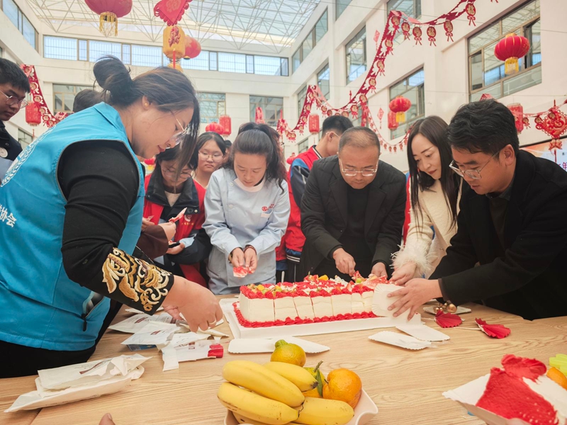 最温馨的场景出现在“岁月如歌・温情同庆”集体生日会。伴随着《祝寿曲》的旋律,爱心蛋糕缓缓推出,老人们围坐一圈,闭眼许愿、共同切蛋糕,在欢声笑语中共享甜蜜时刻。随后的“共品孝膳・共享团圆”环节,志愿者与老人们分工协作,揉面、擀皮、包馅,一边包饺子一边话家常,现场热闹非凡。当热气腾腾的饺子端上桌,温暖也在每个人心间升腾。考虑到行动不便的老人,工作人员还专门将餐食送到床前,确保每位老人都能感受到节日的关怀。