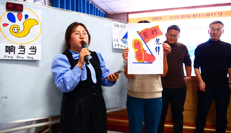 活动中,在真诚的自我介绍暖场后,一场团队创意与凝聚力的淬炼随即拉开帷幕。各小组围绕组名、口号、组徽、组歌与团队展示进行集思广益,灵感在碰撞中火花四溅。“笃行先锋”“星火燎原”等队名响亮登场,寓意深远;铿锵的口号喊出了使命担当;独具匠心的组徽,更是将团队理念浓缩于方寸之间,凝聚了全组的智慧与共识。最终,在精彩纷呈的团队展示环节,各小组以饱满的激情进行了组歌表演,嘹亮的歌声与昂扬的旋律交织,将团队风采与集体精神展现得淋漓尽致。现场气氛在掌声与喝彩中被一次次点燃,陌生的坚冰迅速消融,为后续的学习之旅铸就了坚实的团队基石。