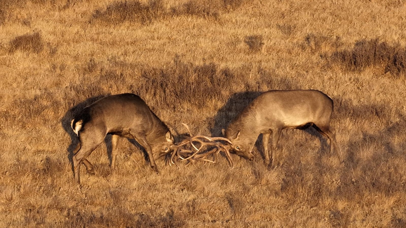金黄草坡上,马鹿群悠然信步,健壮雄鹿的鹿角如天然雕塑般虬曲苍劲,时而两两抵角相争,尽显野性力量;狍鹿身形娇俏灵动,在草甸间轻盈穿梭,宛如草原撒欢的精灵;岩羊则在山地边缘腾跃攀爬,身姿矫健如“岩壁芭蕾舞者”,与巍峨山峦勾勒出刚柔相济的自然意趣。