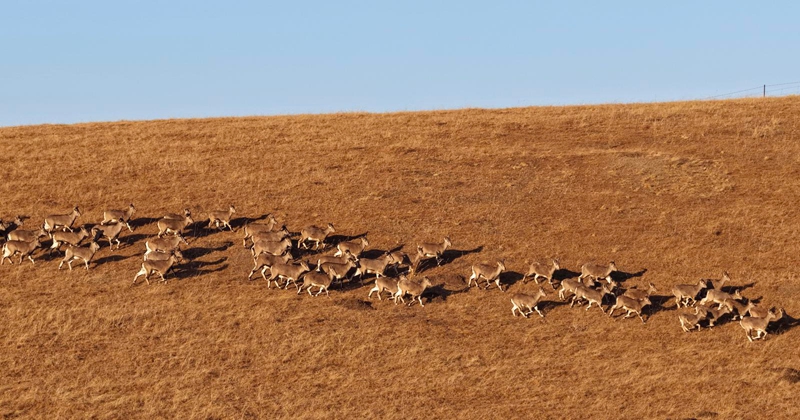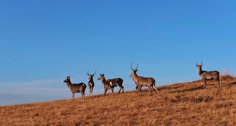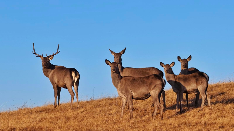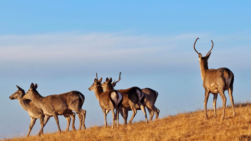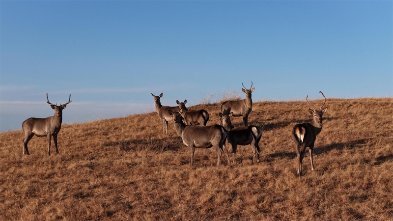 甘肃山丹马场:马鹿、狍鹿、岩羊共舞草原 绘就生态和谐新图景