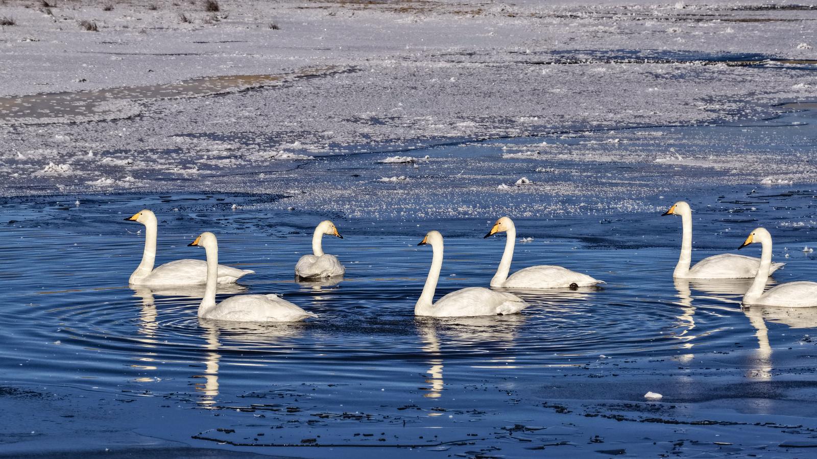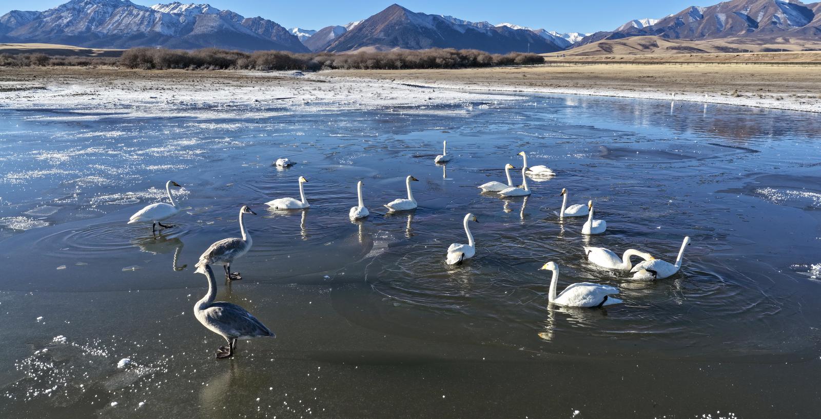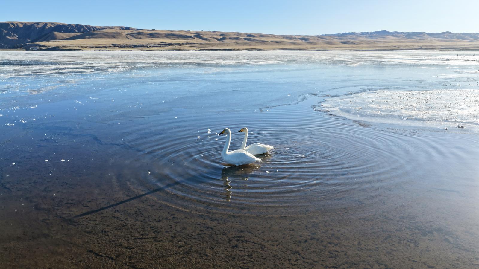 甘肃山丹:马场鸾鸟湖初冬湿地生机盎然——赤麻鸭、大天鹅、大白鹭珍稀鸟类同框栖息