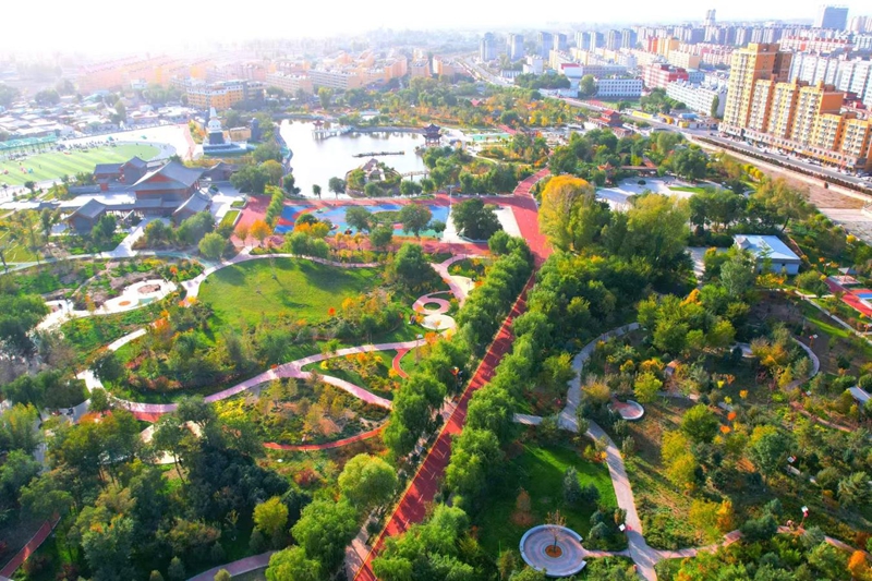 园林提质焕新颜,功能融合惠万家。坚持“功能+美学”双导向,对三和园、智行广场、水体公园等6处公园广场实施品质提升,更新铺装面积约5.2万平方米,增设无障碍通道、休憩座椅、凉亭、健身器材等便民设施200余处,嵌入儿童游乐设施、艺术角、健康知识宣传等多元服务功能,推动适老化、适儿化改造全面覆盖,公共空间从“可观赏”向“可进入、可互动”转变。构建“15分钟健身圈”,新建健身步道与骑行绿道40公里,形成了健康稳定、相互连通、多彩多姿的生态系统空间。在南湖公园、如意花海等重点区域打造以“山丹花”为核心特色的花卉矩阵,规模化种植山丹花30余万株、面积达1.01万平方米,凸显“城以花名、花为城魂”的地方特色。创新采用立体造景模式,每年在主次干道设置复层花架、花箱,栽植矮牵牛、石竹等各类花卉15万余株,实现“抬头见花、转角遇景”的景观效果,城市绿化更具层次感、艺术感。