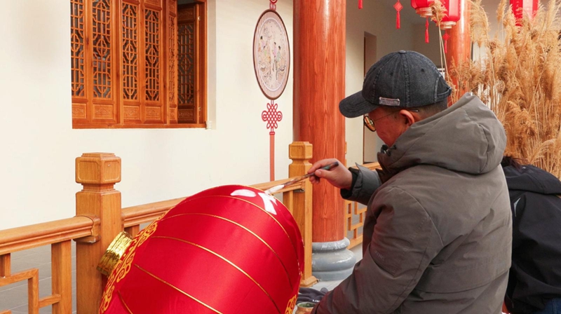 冬至民俗文化活动现场氛围总负责人 颜江玲:今年我们冬至民俗文化活动现场的氛围营造主要是以民俗非遗以及节气为元素,我们的现场主会场有我们最原始的箩筐,结合我们的剪纸,我们做的是二十四节气,还有现场我们有牛娃子饭的食材,牛娃子饭狂想曲的一个景观,还有我们的非遗传习所主要是以二十四节气还有古诗词,我们灯笼上印的都是我们的古诗词,也是以二十四节气为主,我们现在已经完成了一些大的景观的建设和摆放,剩下的一些氛围的梅花、干枝梅还有我们的金黄色的麦穗,这都是在舞台形成之后,在我们现场再增加一点气氛。
