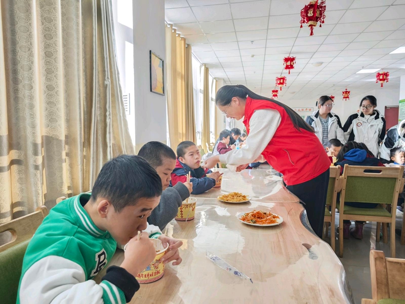 与此同时,在山丹县残疾人托养中心成年残疾人群体也迎来了属于他们的冬至时刻。许多人在机构中生活多年,平日少有机会参与节庆活动。当一碗热乎乎的“牛娃子饭”端到面前,他们眼中闪烁着久违的光亮。“我们也想吃‘牛娃子饭’,也想过个热闹的冬至。”一位托养人员朴实的话语,道出了无数人心中的期盼。志愿者们不仅送上饭菜,更陪他们聊天、拉家常,倾听他们的日常点滴,给予尊重与陪伴,让这个传统节日真正有了团圆的意义。
