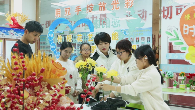 如果说柴燕的孩子代表了早期干预与康教融合的成功案例,那么更多大龄特殊儿童与成年残疾人面临的未来出路,则是摆在眼前更深层的课题。走进“慢天使花艺花坊”,一下子就被温馨的氛围笼罩其中。这里不仅是学习花卉修剪、包装的课堂,更是大龄心智障碍青年尝试接触社会、培养职业能力的起点,他们在这里迈出了从受助者向潜在劳动者转变的第一步,这正是将特殊教育向职业领域延伸的生动缩影。