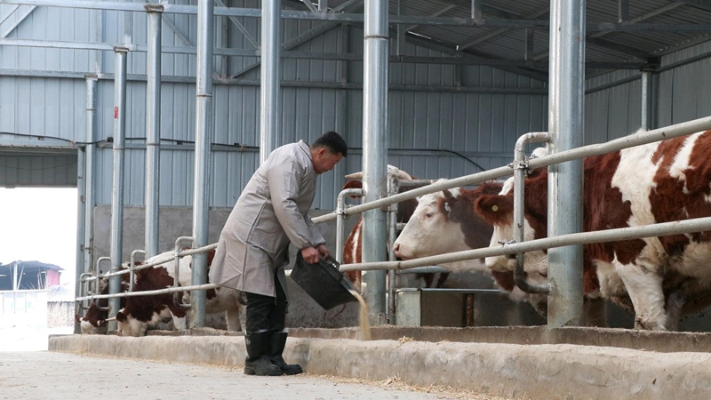 走进山丹县祥茂农牧专业合作社,负责人吴兴祥正提着料盆,熟练地将混合饲料撒入食槽。牛舍内,毛色光亮的西门塔尔牛挨挨挤挤,咀嚼声此起彼伏。吴兴祥养牛已八年有余,从最初起步发展到如今一百多头的存栏规模,牛场运行的每一个环节他都了然于胸。“从选种、配种到喂养、防疫,每一步都是我亲自参与。”吴兴祥说,“现在每年能出栏五十几头牛犊,虽然天天跟牛粪、饲料打交道,但看着牛群兴旺,日子越来越有底气,这就是我最大的收获。”他的合作社通过精细化管理,提高了肉牛品质,也稳住了养殖效益。