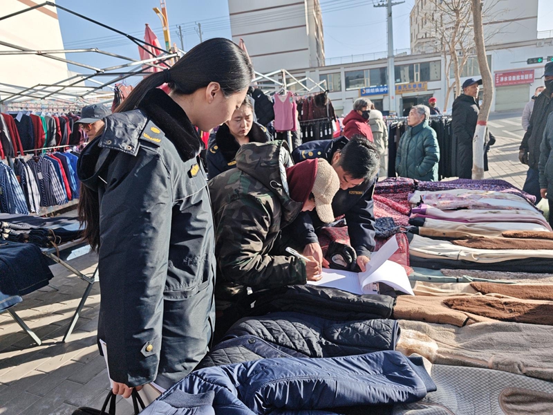 播撒“春风服务”传递温情,共绘祥和年景“同心圆”。执法队化身“活地图”与“贴心人”,累计主动为居民提供咨询指引、帮扶协助等服务200余次,用实际行动传递城市暖意。在柔性执法过程中,注重倾听民声需求,合理设置、引导农副产品、特色年货销售临时点位,让本地特产有序流通,便利群众置办年货,既保留了传统集市的烟火气,又确保了市容整洁与道路通畅。同时,执法队员巧妙融入文明倡导,累计开展包括规范经营提示、安全过节提醒、邻里和谐倡议、禁燃禁放烟花爆竹政策宣传260余人次,通过乡音土语的温情沟通,让文明理念与节日祝福一同送达,使执法过程成为播撒文明、传递温暖的桥梁。使“焉支山下的守护”既有规章的刻度,亦有人情的温度,共同烹制一幅充满传统年味与文明新风的节日画卷。