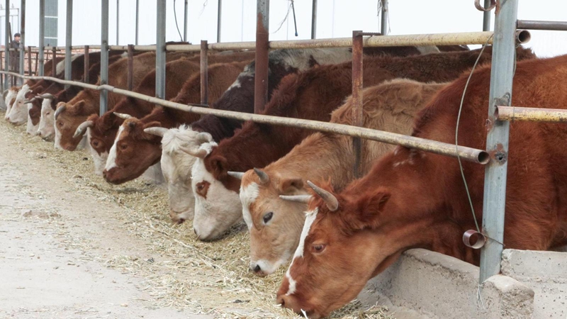 春节前夕,山丹县各大养殖场里一片繁忙景象,养殖户们抢抓节前消费机遇,迎来丰收出栏季。走进甘肃鑫茂丰农牧科技有限公司养殖场,标准化牛棚内整洁有序,一头头体形健硕的西门塔尔、河西肉牛正低头享用配比科学的饲草。“今年建厂以来总计花费一百九十四万元,政府投资八十九万左右,修建了草棚、两个牛棚,清除了草池。政府的补助政策减轻了养殖户资金压力,目前牛场存栏量是两百多头。”鑫茂丰农牧科技有限公司负责人刘涛说。