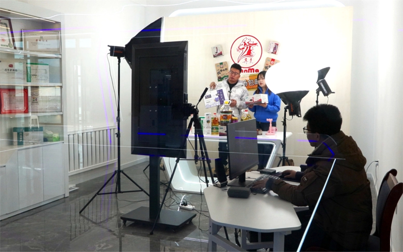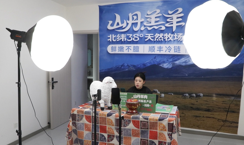 “家人们看,这可是咱祁连山下草原牧养的牦牛,肉质紧实,嚼劲十足!”在山丹马场丹马油脂有限责任公司生态直播间,主播们正在讲解牛肉酱。山丹马场丹马油脂有限责任公司副总经理魏宏兵说:“我们直播间主要销售马场的菜籽油、胡麻油、牦牛肉干、牛肉酱、生鲜牦牛肉。通过县里的电商直播,品牌形象大幅提升。北京、广州、深圳的客户下单最多,有的还特意留言说‘认准了山丹马场的老味道’。”