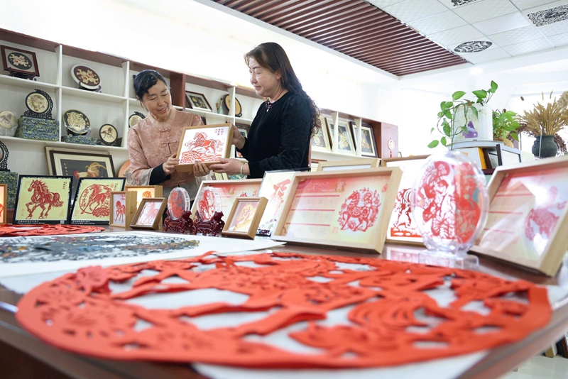 时代浪潮滚滚向前,传统技艺面临着诸多挑战。如今市面上,机器印制剪纸虽工艺精致、价格低廉,却少了手工的情感温度与独特韵味。“手工剪纸的价值,在于每一刀都藏着心意,每幅作品都是独一无二的。”周玉梅语气坚定。面对冲击,她不断探索创新:在传统图案中融入山丹马场、焉支山、汉明长城等本地地标;延伸创作马主题烙画、麦秆画,更带动团队开发剪纸文创产品,通过线上展览让作品走出甘肃。“新的一年,想让丝路马都的非遗被更多人看见,不仅有奔腾骏马,更有鲜活的指尖文化。”她望着墙上的作品,眼中满是憧憬。