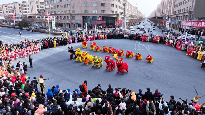 展演分“龙狮腾跃”“民俗欢腾”“非遗雅韵”三大篇章。省级非遗山丹耍龙、舞狮气势磅礴,乡土社火诙谐生动,竹马戏与霸王鞭尽显古韵新风。整场活动不仅展示了山丹深厚的文化底蕴,更舞出了全县上下同心奋进的精气神,为新春佳节增添了喜庆祥和的节日氛围。