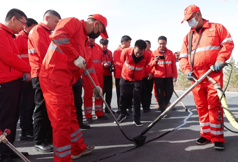 3月23日,张掖公路事业发展中心路面灌缝现场观摩活动在山丹公路段S590线K8+400灌缝作业现场举行。来自中心各养护单位、机关相关科室的60余名干部职工参加活动。