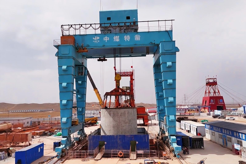 在东水泉矿区青阳煤矿项目回风立井井筒施工现场,巨型门吊精准吊运200吨预制井壁至井口,工人精细开展找正安装,施工紧张有序。该煤矿查明资源量1.33亿吨,设计年产能180万吨,目前86节直径6米的巨型井壁沉井作业已过半,预计3月底全部下沉到位,后续将转入壁后充填及普通法延伸阶段,最终井筒深度将达878米。中煤特殊凿井有限责任公司项目经理郑立锋表示:“项目创新采用‘上钻下掘’钻井法施工工艺,属甘肃省首次应用、西北地区首个落地案例,成功实现区域矿井建设技术重大突破,不仅为甘肃省矿井建设积累了宝贵经验,更为区域能源保供和经济发展注入了强劲动力。”