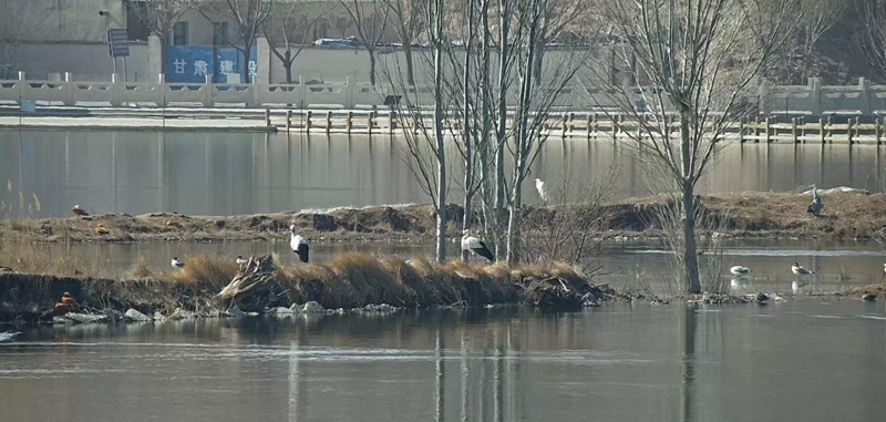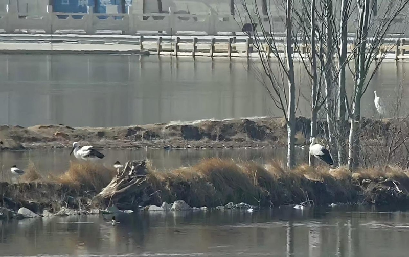近日,山丹县湿地保护站工作人员在祁家店水库进行例行监测时,首次发现两只国家一级保护动物——东方白鹳在此栖息觅食。