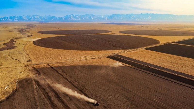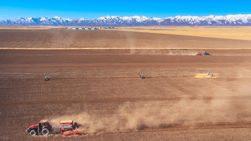 放眼望去,现代化的大型喷灌圈排布有序,覆盖着广袤农田。翻耕、耙耱、镇压、播种等多道工序紧密衔接,压茬推进。亚麻、大麦、青稞等作物同步开播,高原上处处涌动着春耕生产的热潮。