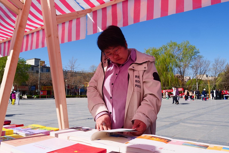 活动现场,一排排整齐的书摊前人头攒动、热闹非凡。社科文艺、少儿读物、农业科技等各类书籍整齐陈列,吸引众多市民驻足翻阅。工作人员热情地向过往群众介绍书籍内容、推荐适读版本,耐心解答读者咨询,不少家长带着孩子精心挑选心仪读物,现场洋溢着浓厚的“淘书”之乐。