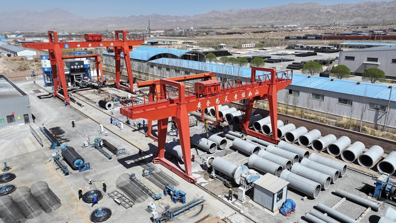 走进甘肃新青龙管业有限责任公司生产厂区,工人们身着工装、头戴安全帽,在各工位娴熟作业,钢筋绑扎、管道成型、压力检测、成品码放等工序环环相扣、衔接顺畅。一根根规格各异的PCP输水管道整齐列队,待检验合格后将发往省内外重点工程项目一线。