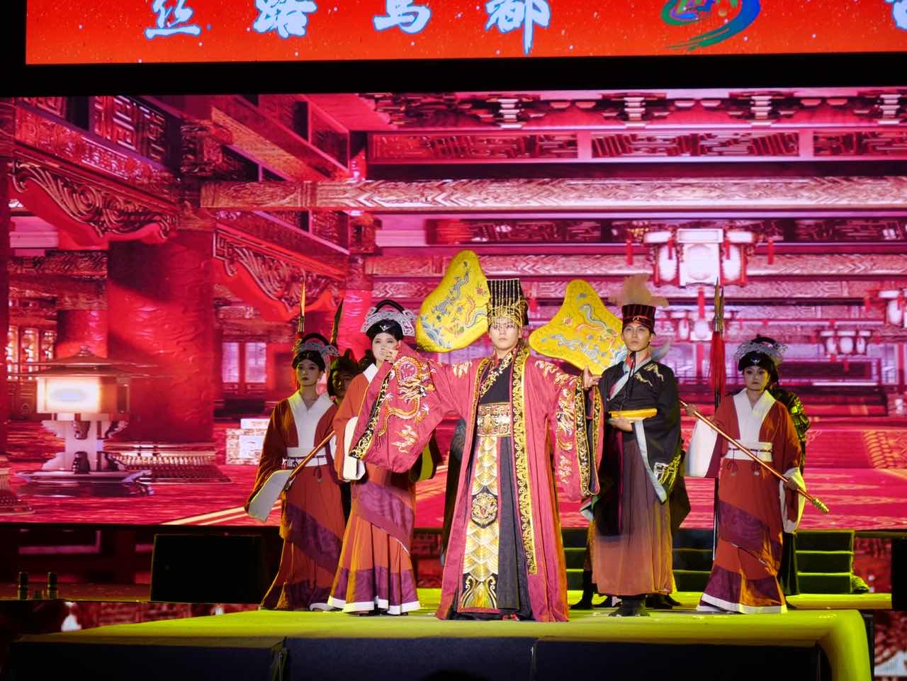 “万邦来朝”篇章将演出推向了高潮。舞台上,各国使节、商队纷至沓来,呈现出一幅繁华的贸易和文化交流的景象。演员们通过精湛的表演,让观众深刻体会到了山丹在历史上的开放与包容。