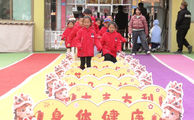 上午,山丹县幼儿园内欢声笑语不断。孩子们在老师的引导下,蹦跳着跨过寓意吉祥的“福气门”,兴高采烈地参与扔沙包、粘贴春花等传统民俗小游戏。“福气通道”两侧摆放的各式吉祥物品吸引着孩子们的目光,大家争相触摸,沾喜气、纳福气,在充满趣味的传统民俗体验中润泽童心、开启新程。