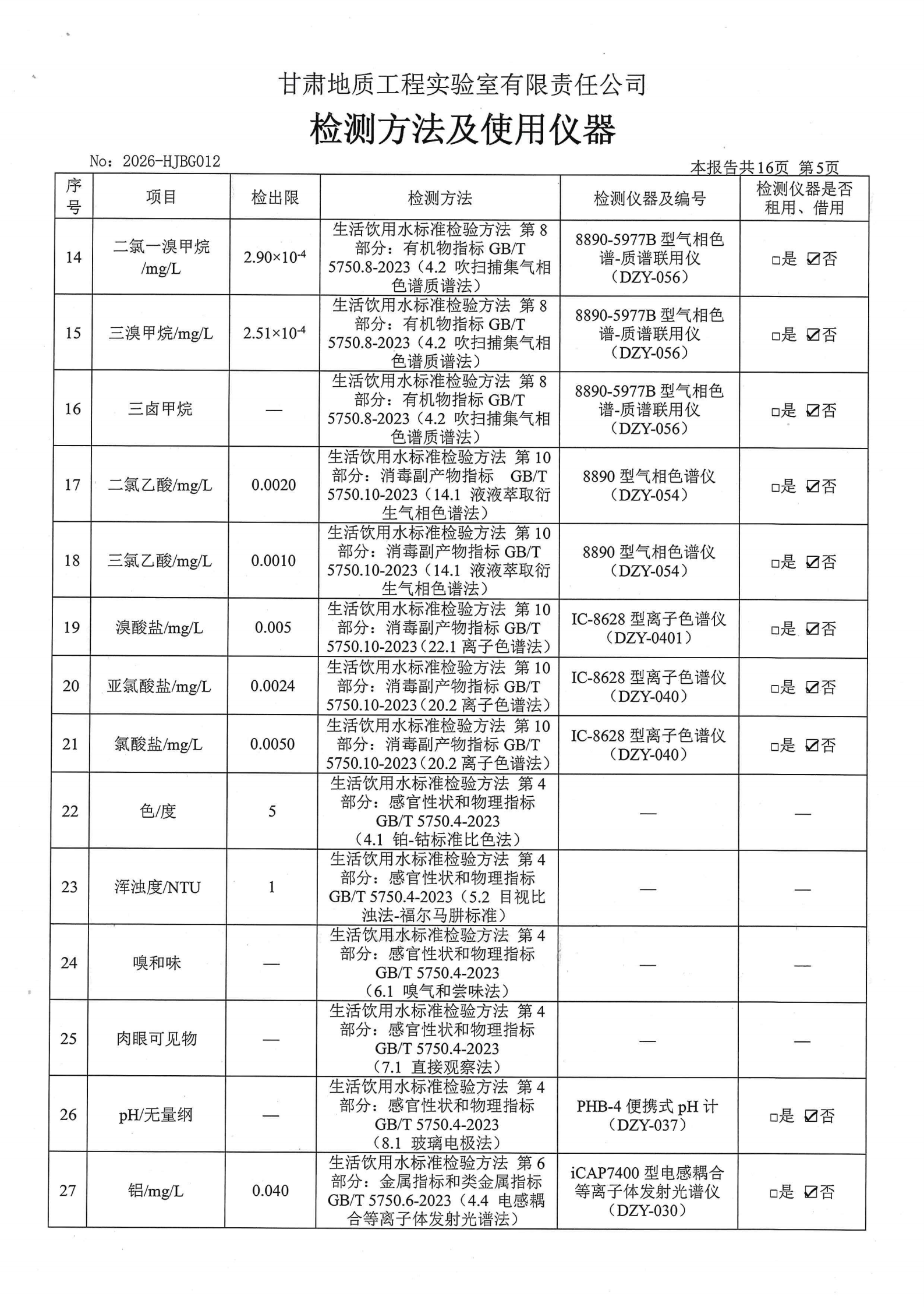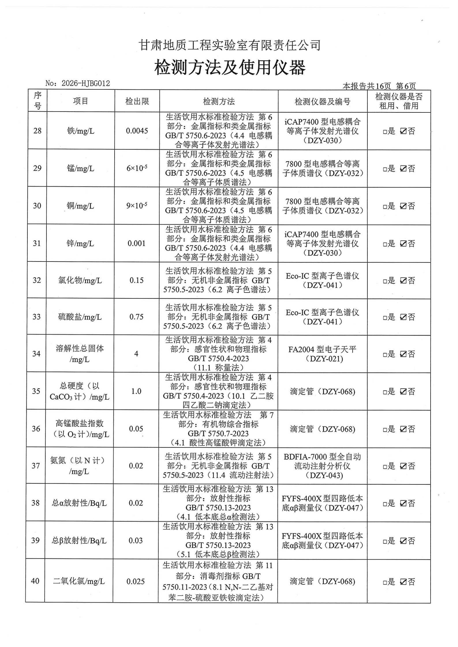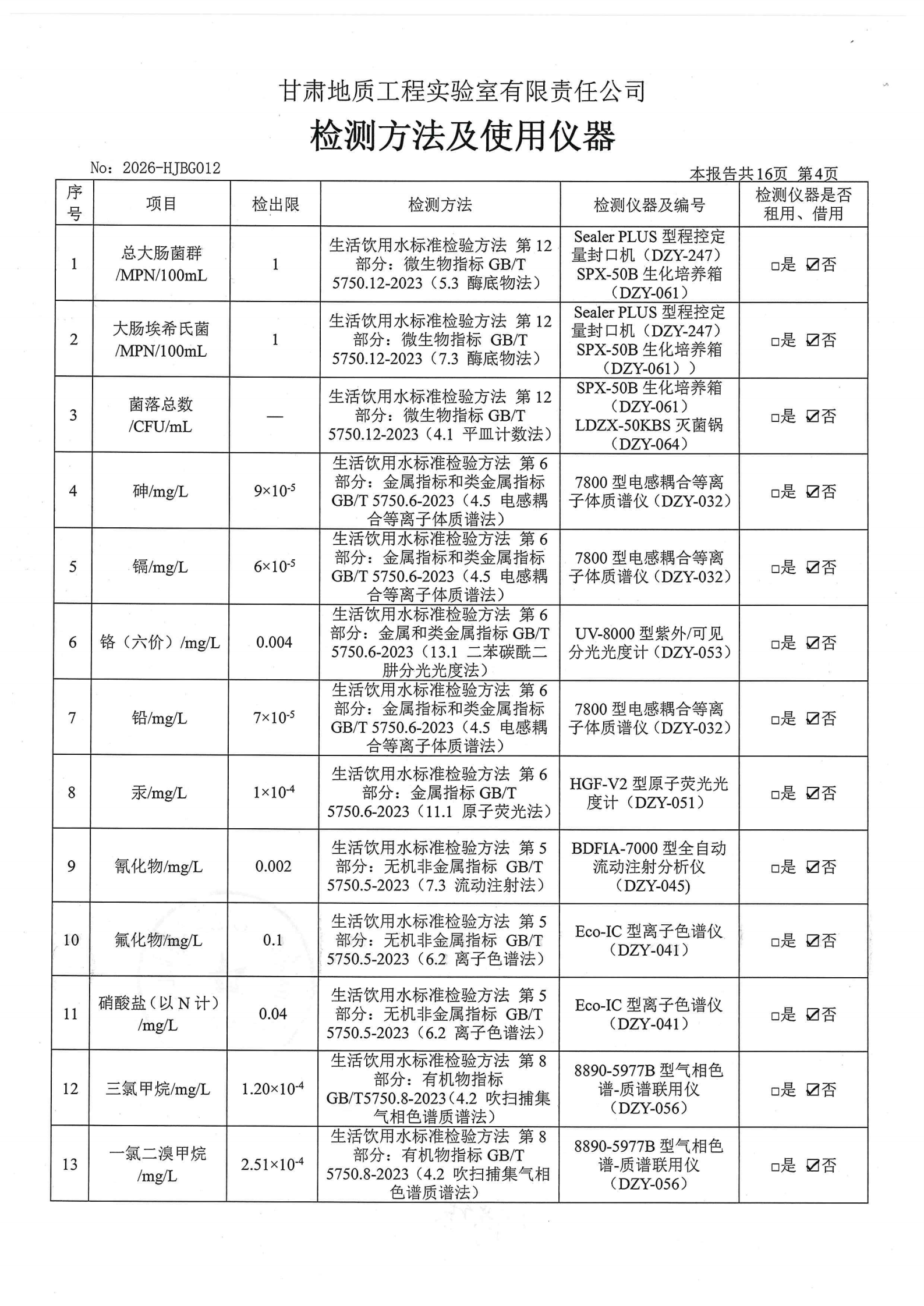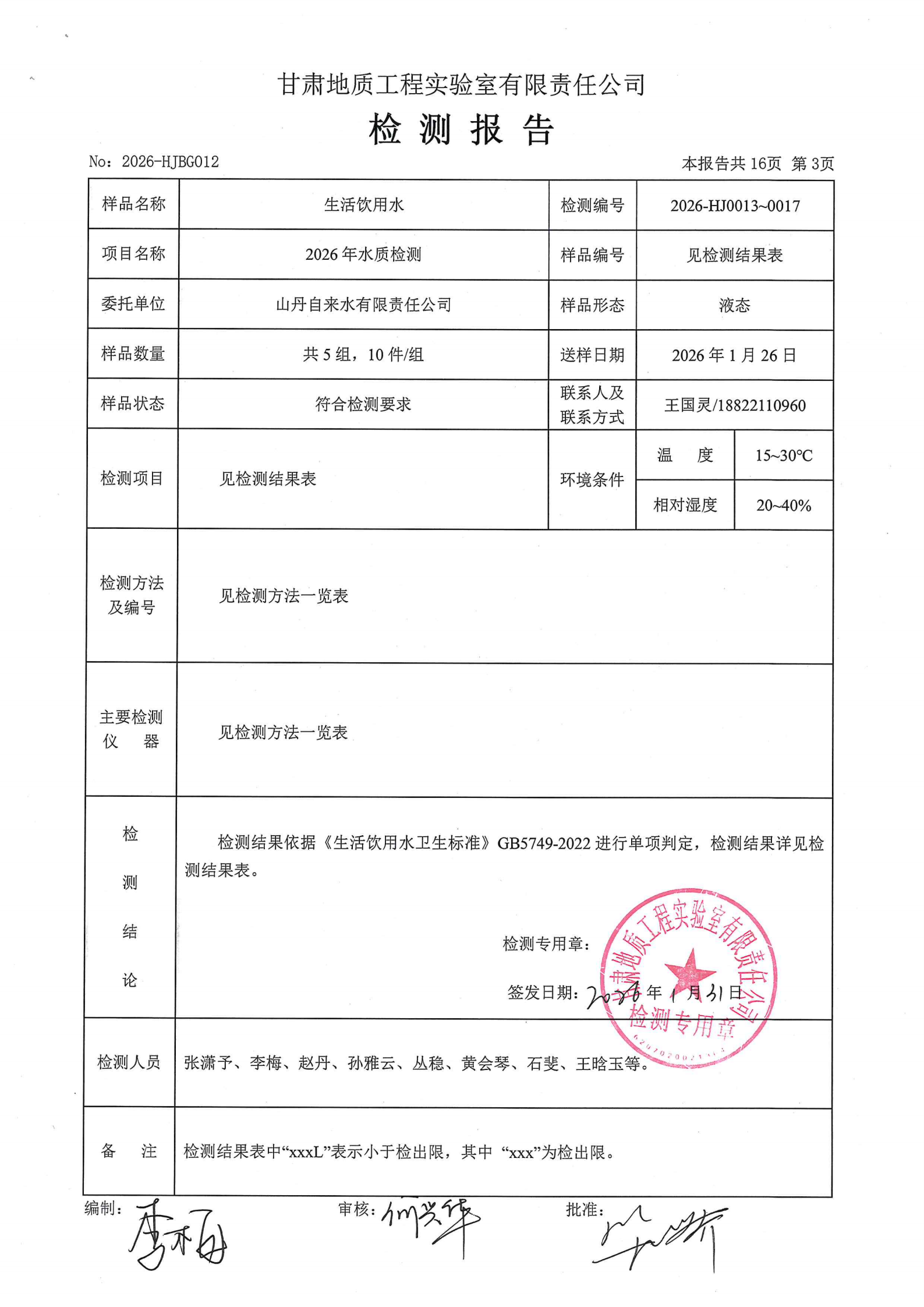 现将2026年第一季度生活饮用水水质检测信息公开如下: