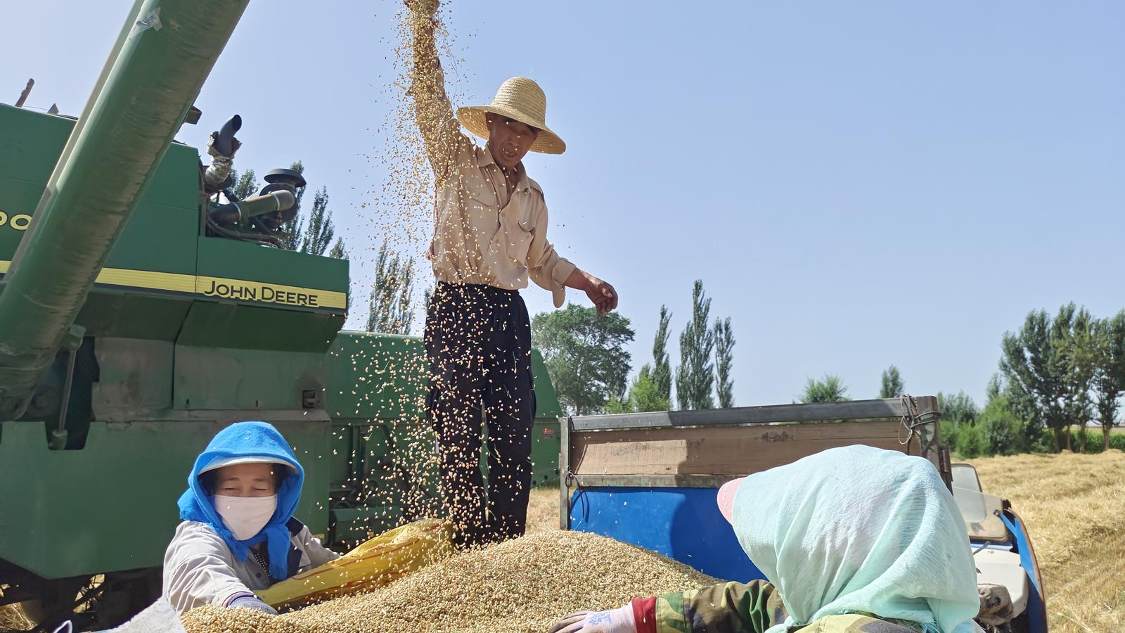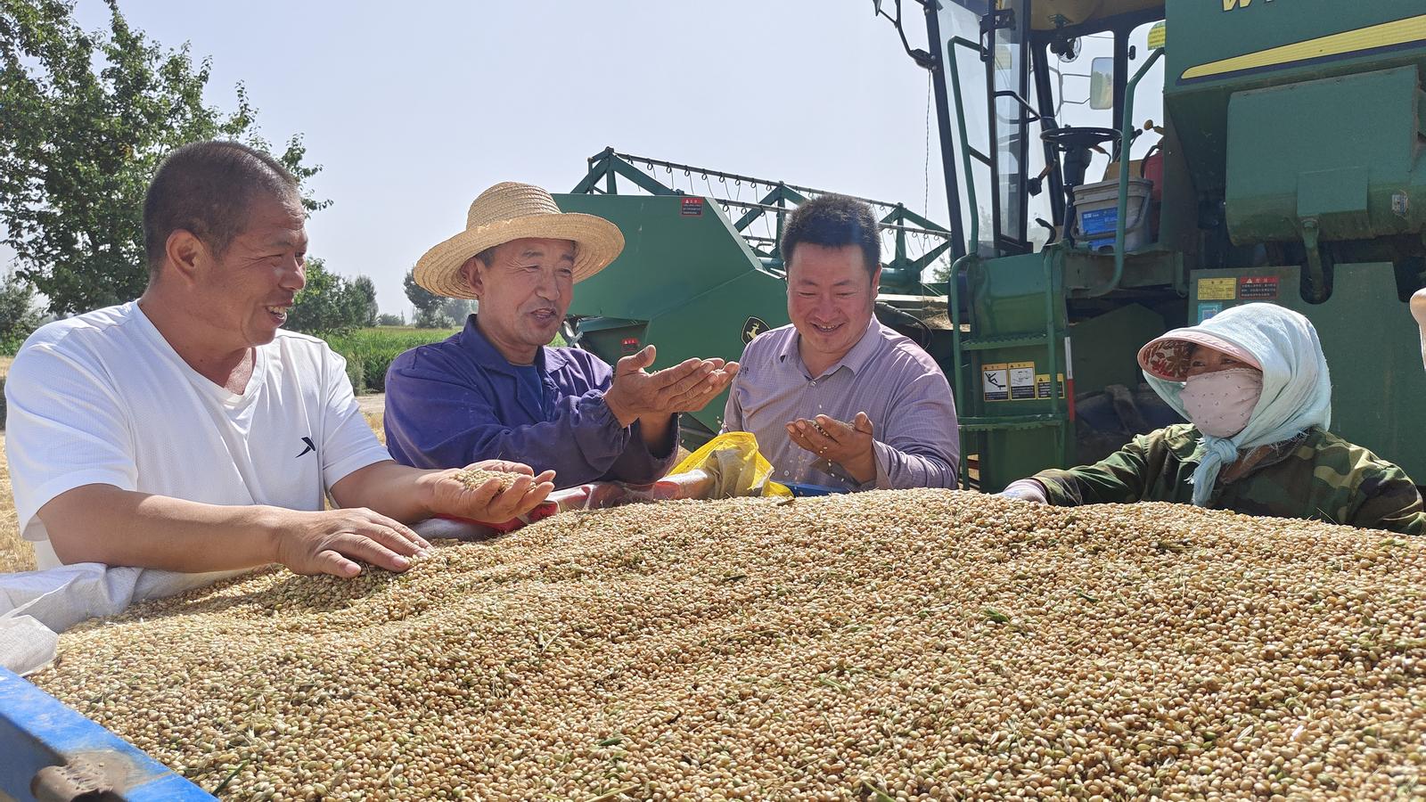 东乐镇山羊堡村村民 段兴蕊:麦子收成好,很高兴,麦粒又大又饱,去年没有今年这样的麦子,去年的麦子瘪得很,今年的麦子看着都让人高兴。