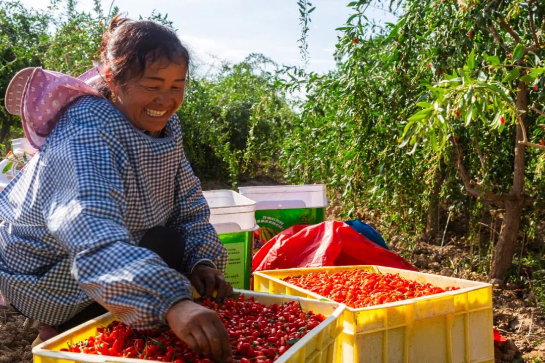 昼夜温差大、日照时间长,为张湾村发展枸杞产业提供了得天独厚的条件。一颗颗皮薄、籽少、肉厚、汁多的枸杞,为张湾村集体经济带来了“钱”景,同时,枸杞产业的发展有效带动了当地劳动力就地转移。