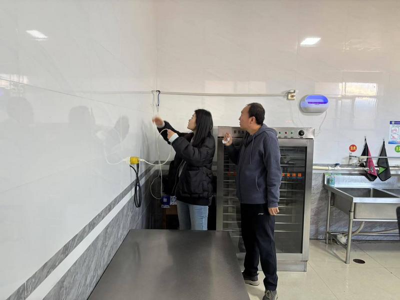 此次检查重点对学校食堂进货台账、餐具消毒、食品采购、存储、加工、留样、卫生要求、设施设备使用等进行监督检查。