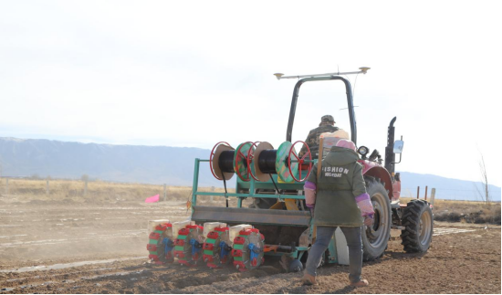 走进老军、祝庄等村,村民们紧跟春光、抢抓农时,拌种、播种、覆膜……纷纷开足马力,种植茴香800亩,孜然200亩、小麦400亩……旋耕机轰鸣作响,翻起层层新土;播种机精准作业,一粒粒种子带着希望埋入沃土。