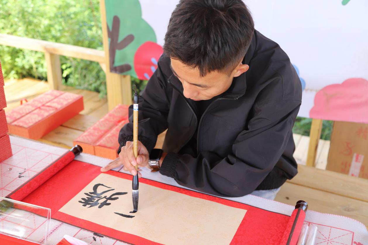 活动期间还设置“玫瑰之约·新风共鉴”“墨韵丹青·家风传承”“蜜意分呈·爱满全场”等体验区,新人在“玫好姻缘牵新风,文明婚俗共践行”打卡墙处签名、拍照留念,弘扬文明、节俭、健康的婚俗新风。书法家现场书写赠送婚俗祝福字画,“百年好合”“琴瑟和鸣”“携手一生”等,将笔墨韵味与婚俗祝福结合。每一笔都藏着对新人婚姻长久的期许,既延续 “以字传情” 的中式浪漫,也让新人时刻回味婚礼的甜蜜与温暖。