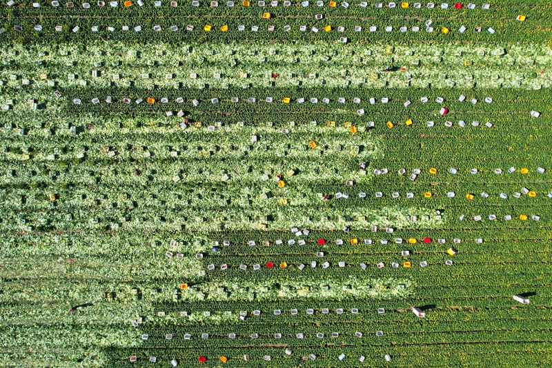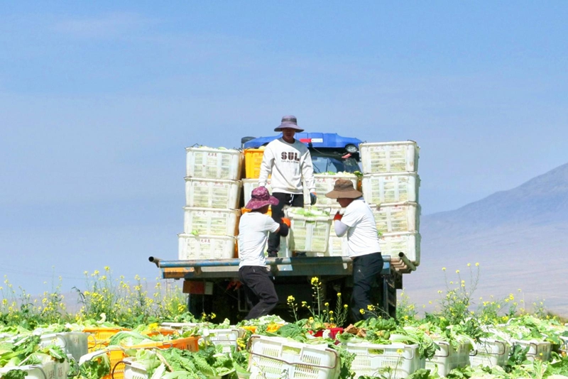 田间地头满是忙碌身影,采收工人穿梭在菜垄间,弯腰收割、快速分拣、打包装筐,动作娴熟利落,欢声笑语里满是丰收的喜悦。