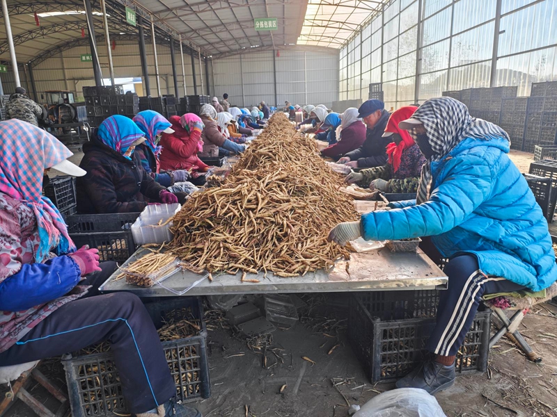 在生产车间里,村民们手法娴熟,将黄参清洗、分拣、晾晒,每一个环节都凝聚着他们对品质的执着。“之前我在外地餐馆打工,钱是能挣一些,但心里总是悬着,惦记着屋里老人娃娃,现在好了,出门就能上班,而且收入稳定。”正在分拣黄参的河湾村村民王大姐一边麻利地挑拣,一边笑着说。这些黄参不仅品质优良、营养丰富,更承载着村民致富的希望。通过引入先进设备和科学管理,产业区实现了从“粗加工”到“精细化、品牌化”的跨越,进一步拓展了线上线下销售渠道,推动“李桥黄参”走向更广阔的市场。