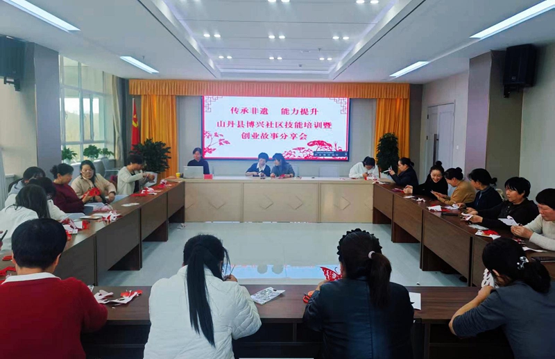 双线培训强技能就业创业双向赋能。在搭建就业对接平台的同时,博兴社区同步推进“通用技能培训+非遗创业培训”双线技能提升行动,为居民赋能充电。针对有就业意愿但技能不足的居民,社区联合专业培训机构,开设无人机操作、焊工、电工等多类“理论+实操”相结合的培训课程,邀请行业经验丰富的讲师授课,并配备完善的实训设施,确保学员切实掌握技能要点。目前,已累计完成培训报名登记45人,助力失业群众掌握一技之长。针对有创业意愿的居民,社区在多功能活动室开展“传承非遗创业赋能”双项技能培训,特邀省级非遗代表性传承人周玉梅授课,以“技艺传授+市场转化”为核心,开设剪纸与麦秆画两大实用技艺模块,吸引70余名有就业创业意愿的居民及非遗爱好者参与。周老师结合自身创业实战经历,解析传统技艺的市场应用场景,传授剪纸折剪技巧、麦秆画构图粘贴等核心技艺,以及批量制作、成本控制等创业实用经验。课堂上,学员们专注投入,积极探讨技艺难点与创业方向,不少人构思出融合非遗元素的创业项目,现场涌动着将技艺转化为收益的强烈意愿。