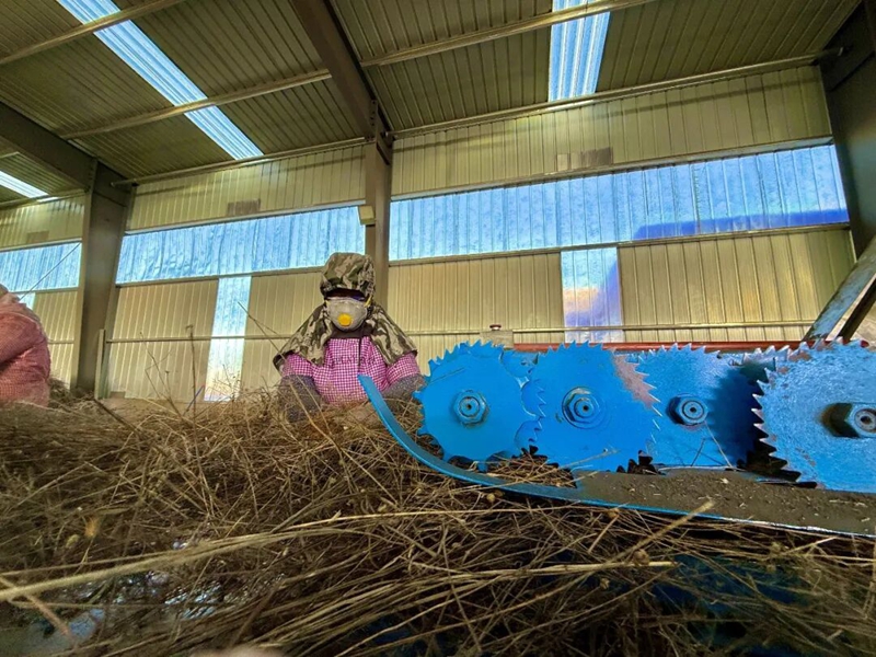 小产业能成大气候,根基在精准定位与模式创新。龙纺亚麻立足本地资源禀赋,在原芦堡村亚麻厂基础上改扩建升级,以“小切口”做深产业文章,构建起“种植—加工—销售—废料再利用”的全链条闭环模式。企业以土地流转为纽带,在周边村庄打造规模化亚麻种植基地,通过“基地+种植大户”模式,为农户提供全程技术指导和物资保障,让昔日零散的农田变身优质亚麻“绿色粮仓”。目前,已流转土地1420亩,既筑牢了产业发展的原料根基,也让农民从土地中获得更稳定的收益,为小产业起步夯实了基础。