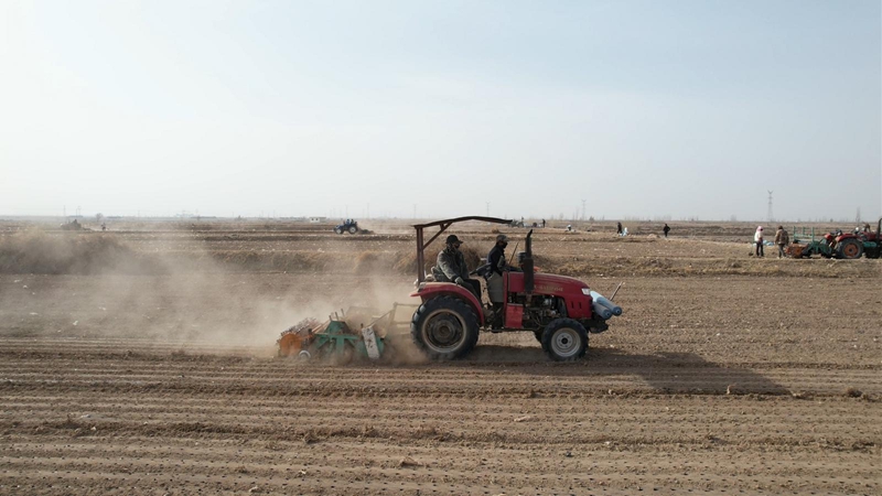 走进东乐镇城西村小麦制种连片种植基地,平整的耕地一望无际、舒展如茵,大型播种机往来穿梭、匀速作业,专用保墒地膜整齐铺展,麦种精准入土、覆土压实,全程机械化耕种一气呵成,一幅生机盎然的春日农耕画卷徐徐展开。