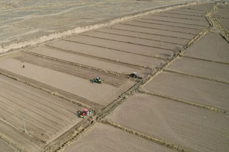 科技赋能提质量,良种良法精播种。为实现春小麦“播得准、播得匀、播得好”,陈户镇坚持科技赋能春耕生产,全力推动良种、良法、良机深度配套,以科学种植夯实增产基础。立足本地气候与土壤条件,主推陇春41号、宁春55号等抗旱、抗病、高产优质小麦品种,实现良种覆盖率达90%以上,从源头保障小麦出苗齐、长势壮、产量高。组建农技服务小分队,下沉田间地头开展一线指导,农技人员手把手教授农户适期播种、合理密植、精准拌种等关键技术,严格把控播种深度、播量标准,确保下籽均匀、深浅适宜、出苗整齐。