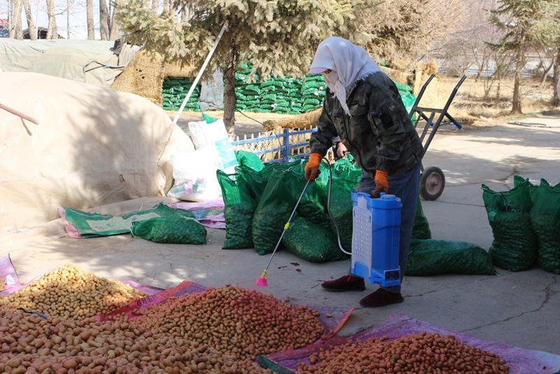 种薯“精育”提品质,匠心孕育丰收苗。沙沟村种植大户杨志旺的种薯处理现场,村民们分工协作,熟练开展种薯切块、消毒、催芽等作业,将饱满健壮的种薯切成大小均匀的薯块,确保每一块薯种都具备优良发芽能力,切好的薯块整齐码放,承载着农户对丰收的热切期盼。