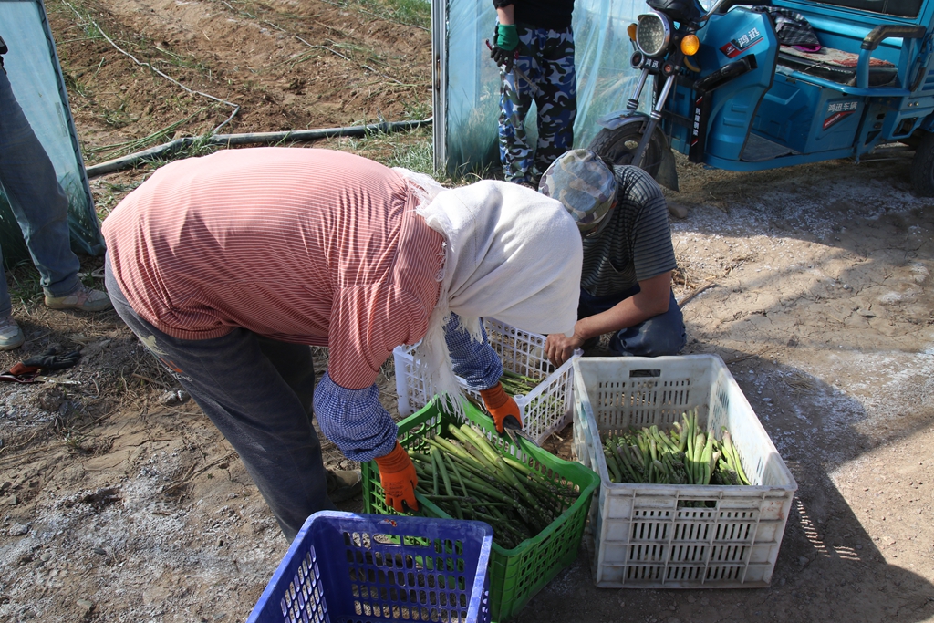 “芦笋采摘讲究‘鲜、嫩、快’,芦笋长到25公分需每日采摘,我们现在每天8点开工,采摘后及时分拣冷藏。”就近务工的王阿姨笑着说,“家离基地近,干活方便,挣钱顾家两不误。”