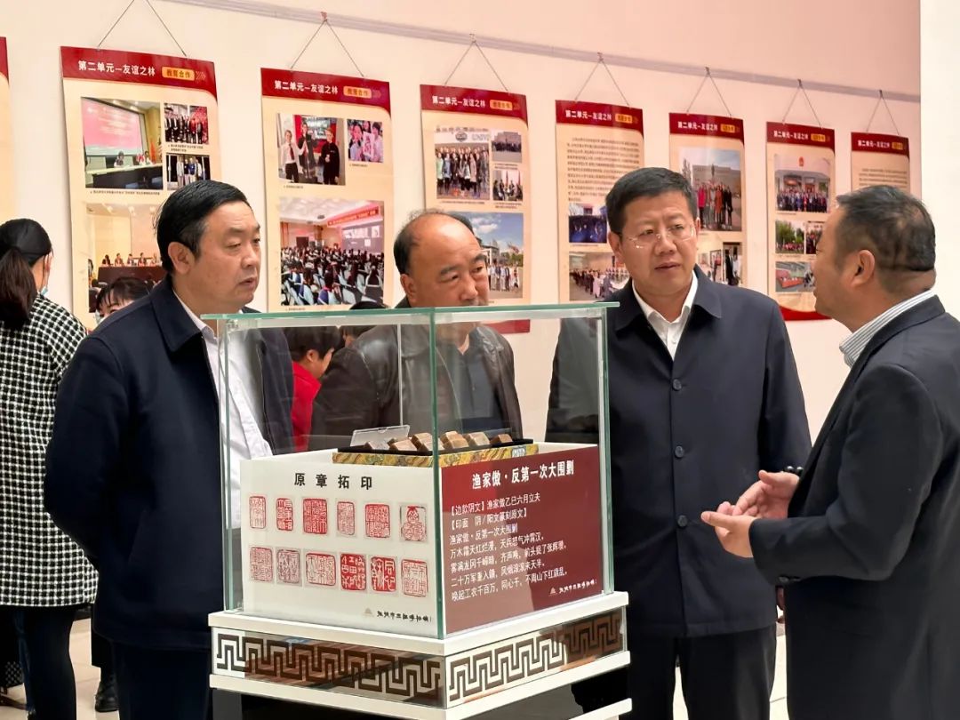 3月24日,“国印篆刻第一人”顿立夫先生“红色文化题材”篆刻原作展在山丹县博物馆展出。县领导文勇、冯金山、杨玉珍和张掖市三缘博物馆、县文体广旅局等相关单位负责人、书画印章爱好者参加活动。