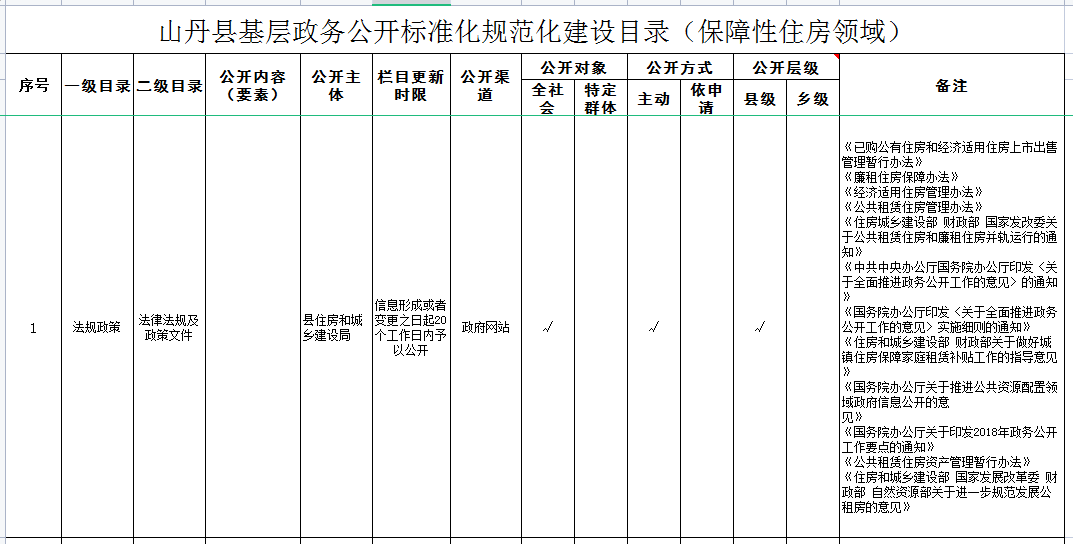 山丹县基层政务公开标准化规范化建设目录(保障性住房领域)