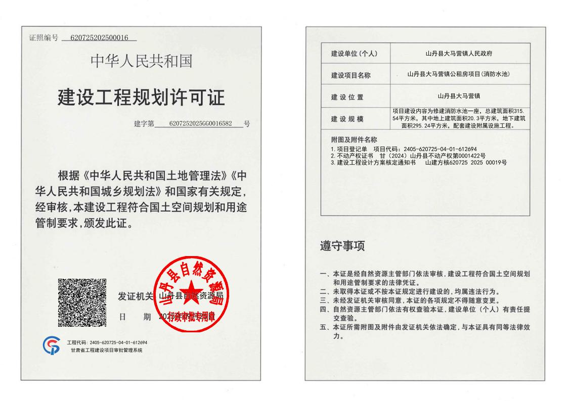 山丹县大马营镇公租房项目(消防水池)建设工程规划许可证