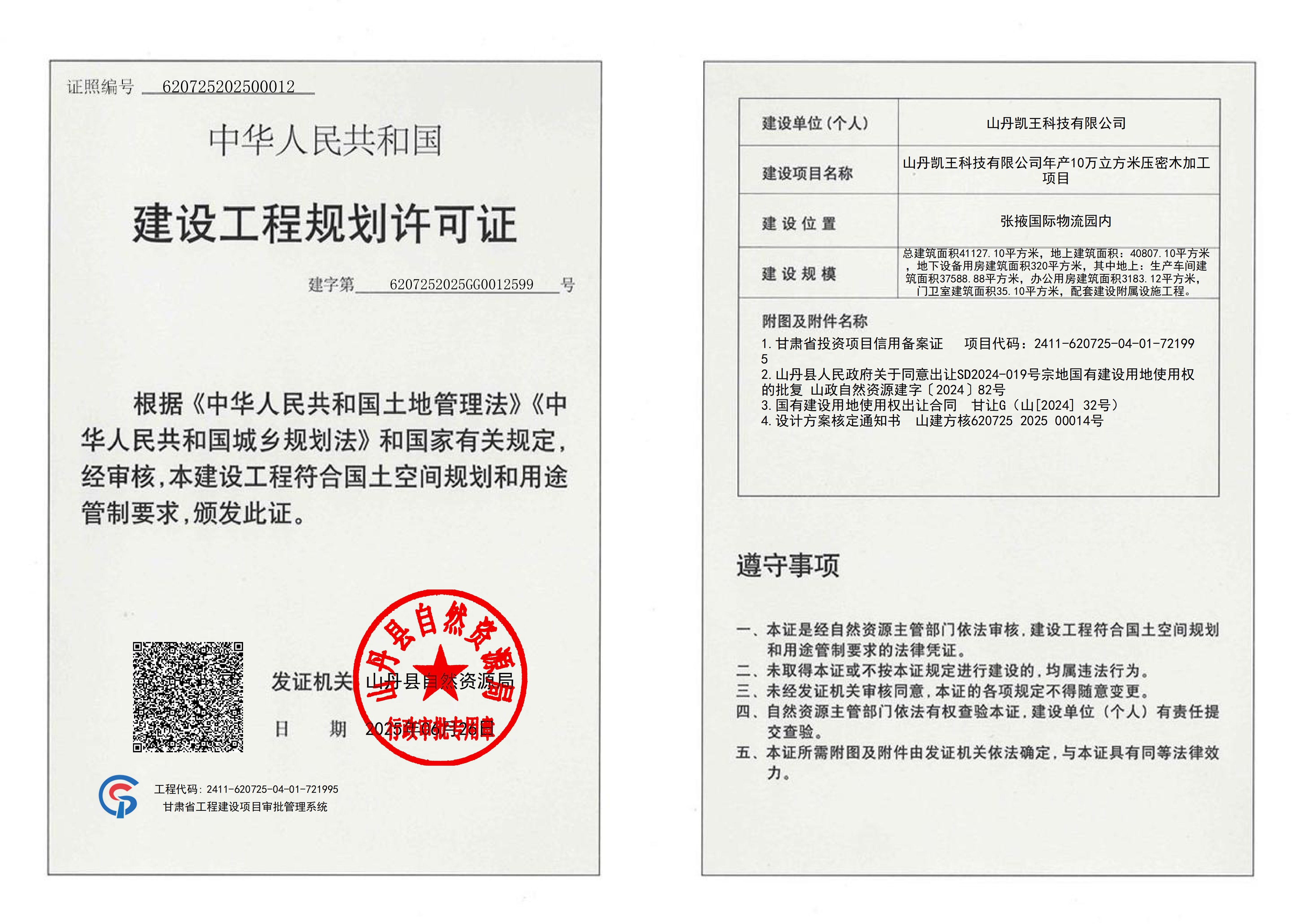 山丹凯王科技有限公司年产10万立方米压密木加工项目建设工程规划许可证