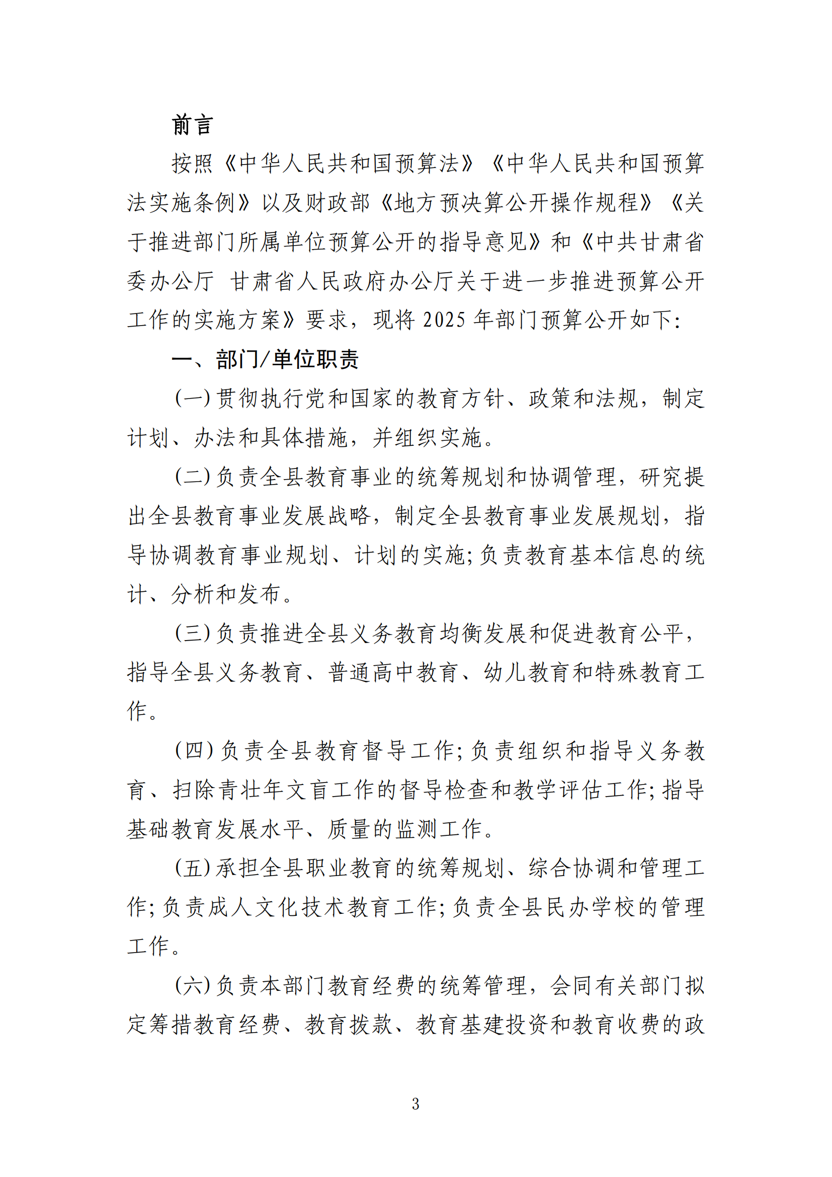 山丹县教育局(本级)2025年单位预算公开情况说明