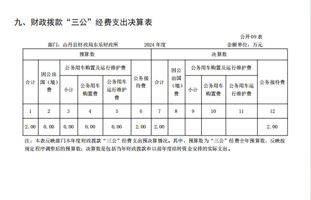 2024年度“三公”经费支出全年预算数为2.00万元,支出决算为2.00万元,决算数等于预算数的主要原因是我单位实际产生公务接待费2万元,较上年决算数增加1.10万元,增长122.22%,主要原因是本年度我单位公务接待需求较多。