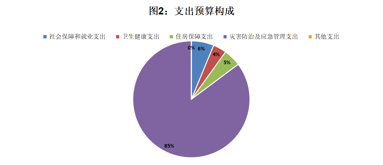 2026年一般公共预算当年支出950.87万元,包括:一般公共服务支出0万元、公共安全支出0万元、教育支出0万元、科学技术支出0万元、社会保障和就业支出59.21万元、卫生健康支出35.35万元、住房保障支出45.95万元、灾害防治及应急管理支出810.37万元、其他支出0万元。具体安排情况如下(详见部门(单位)预算公开表4,5,6,7):