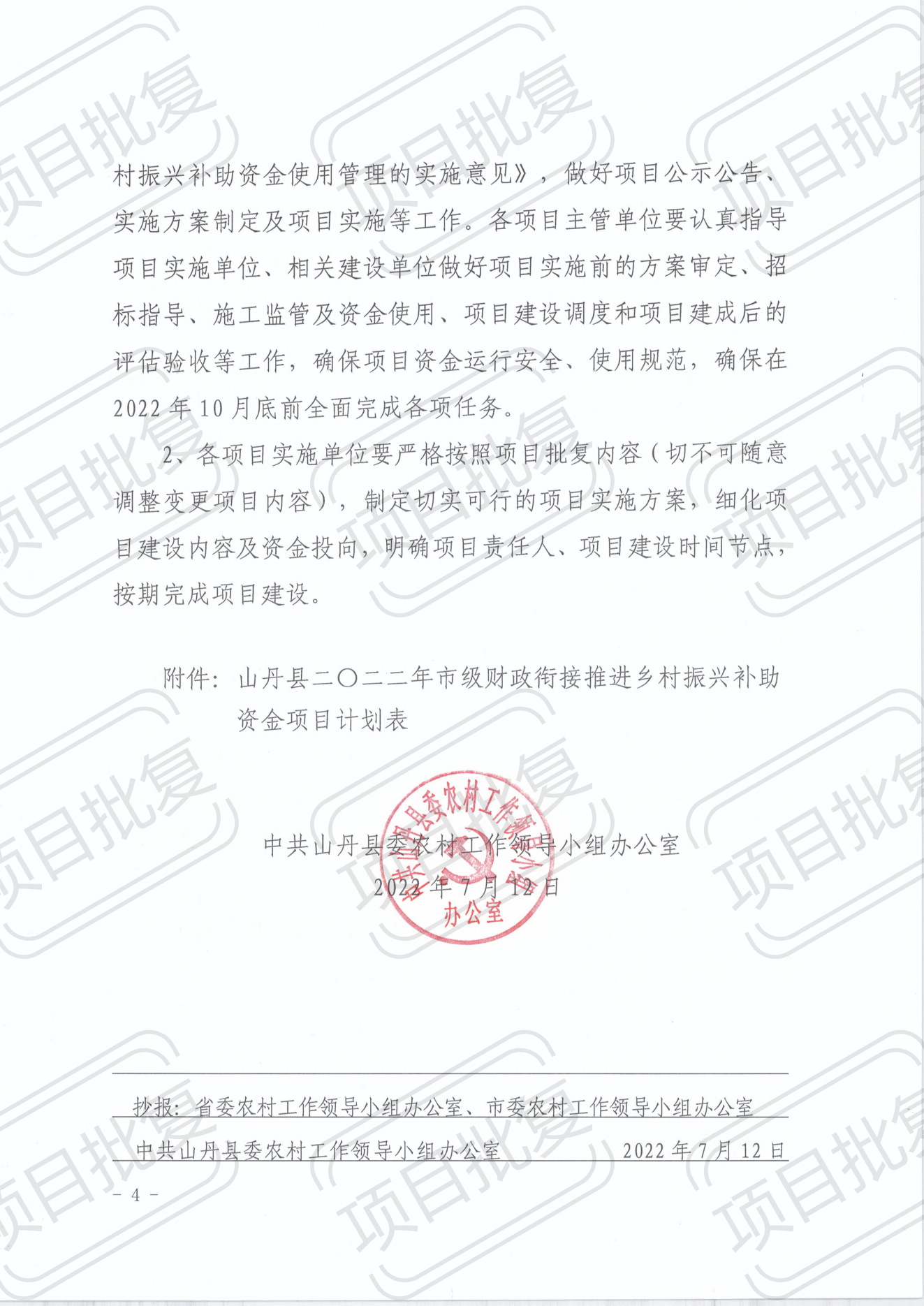 关于二〇二二年度市级巩固拓展脱贫攻坚成果项目计划批复