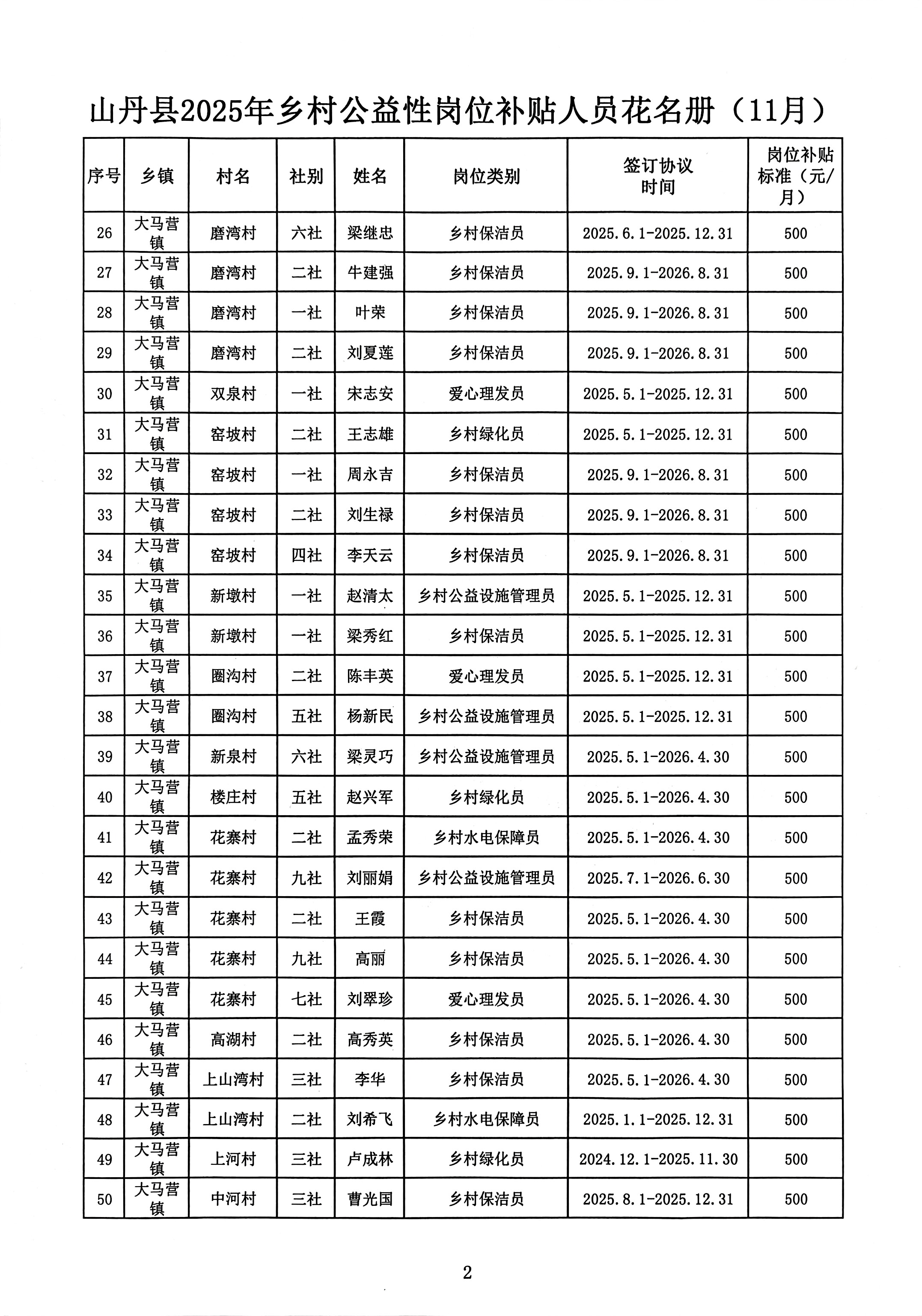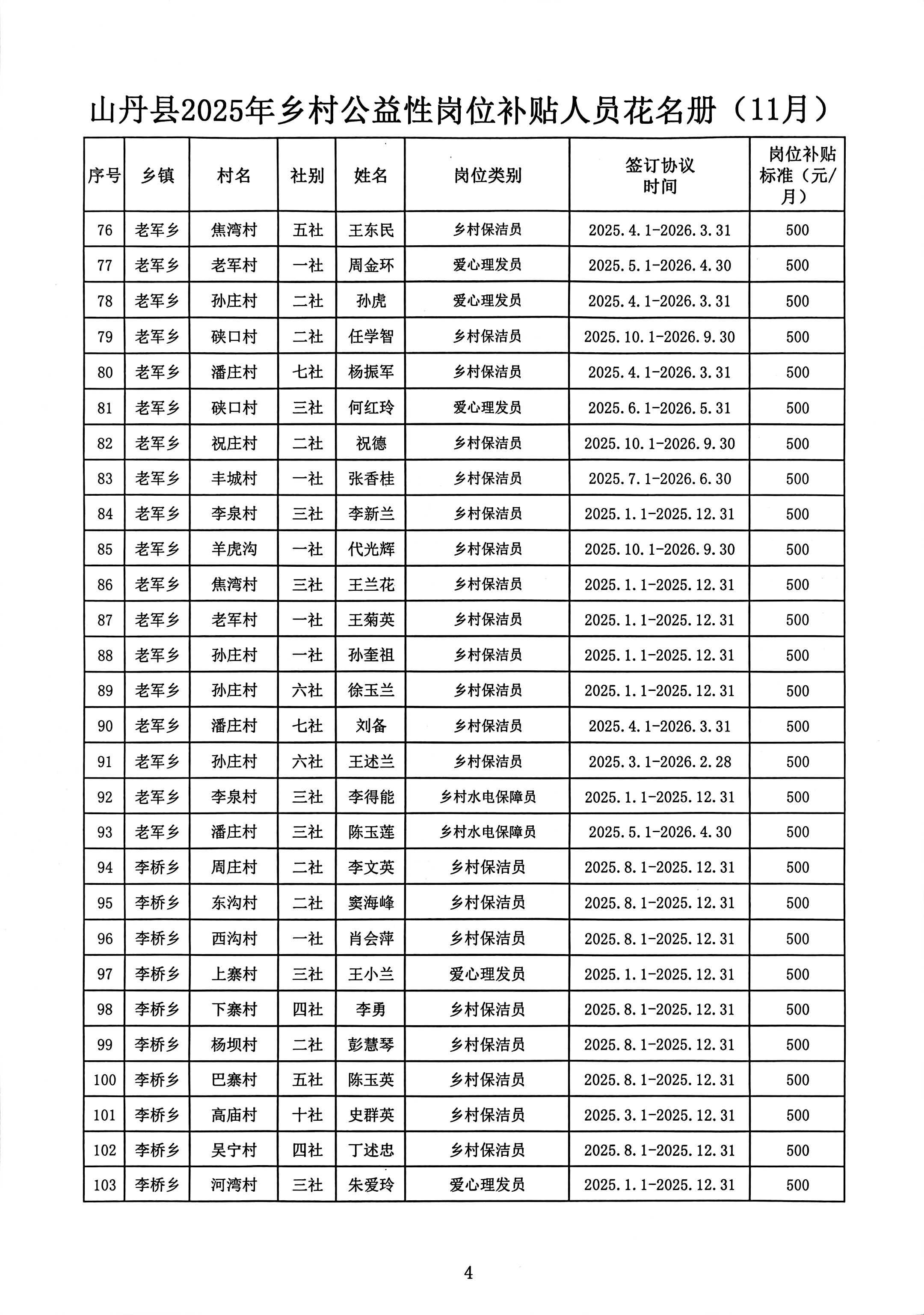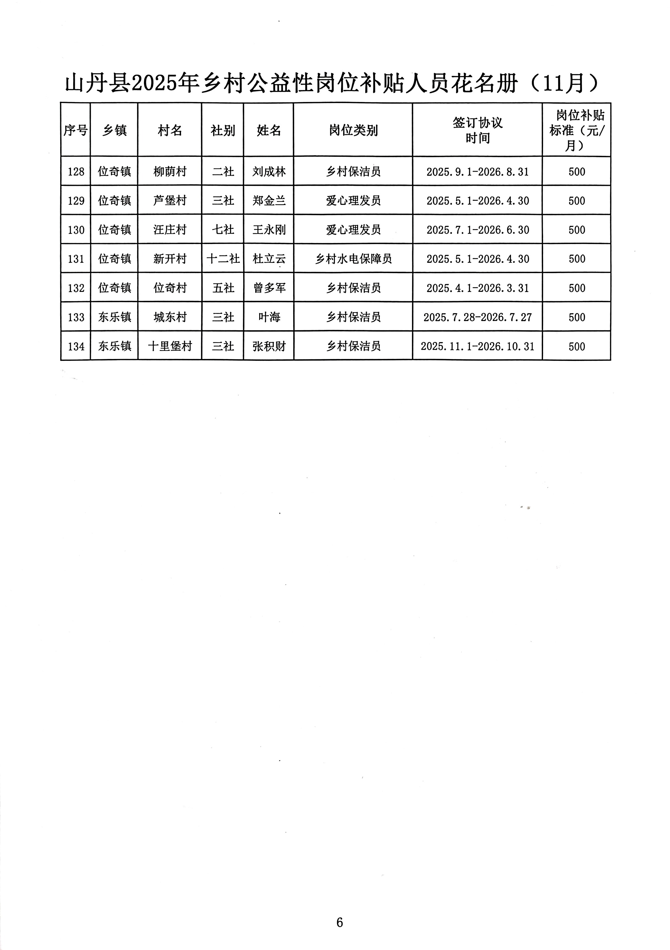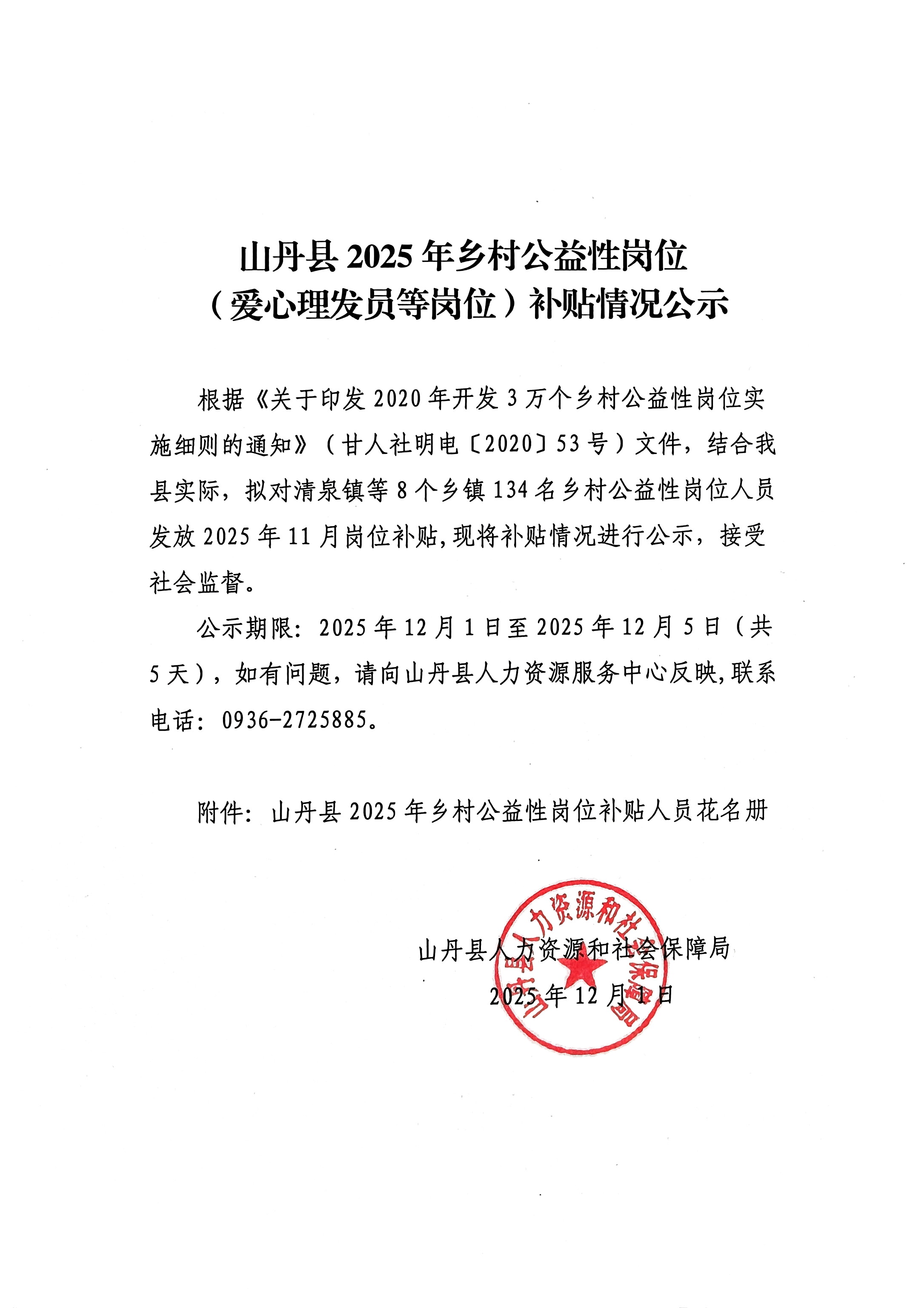 山丹县2025年乡村公益性岗位(爱心理发员等岗位)补贴情况公示