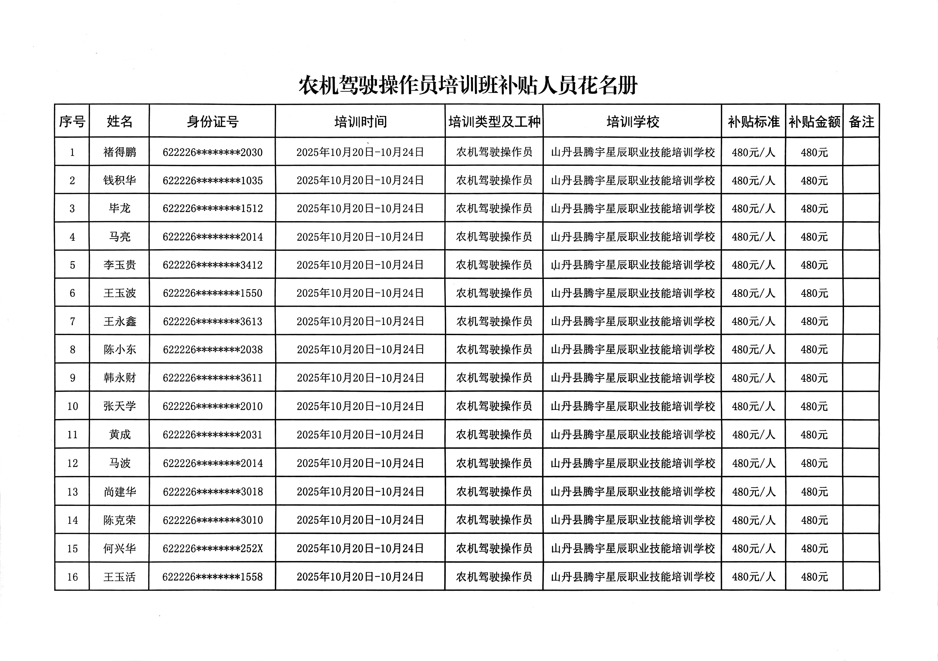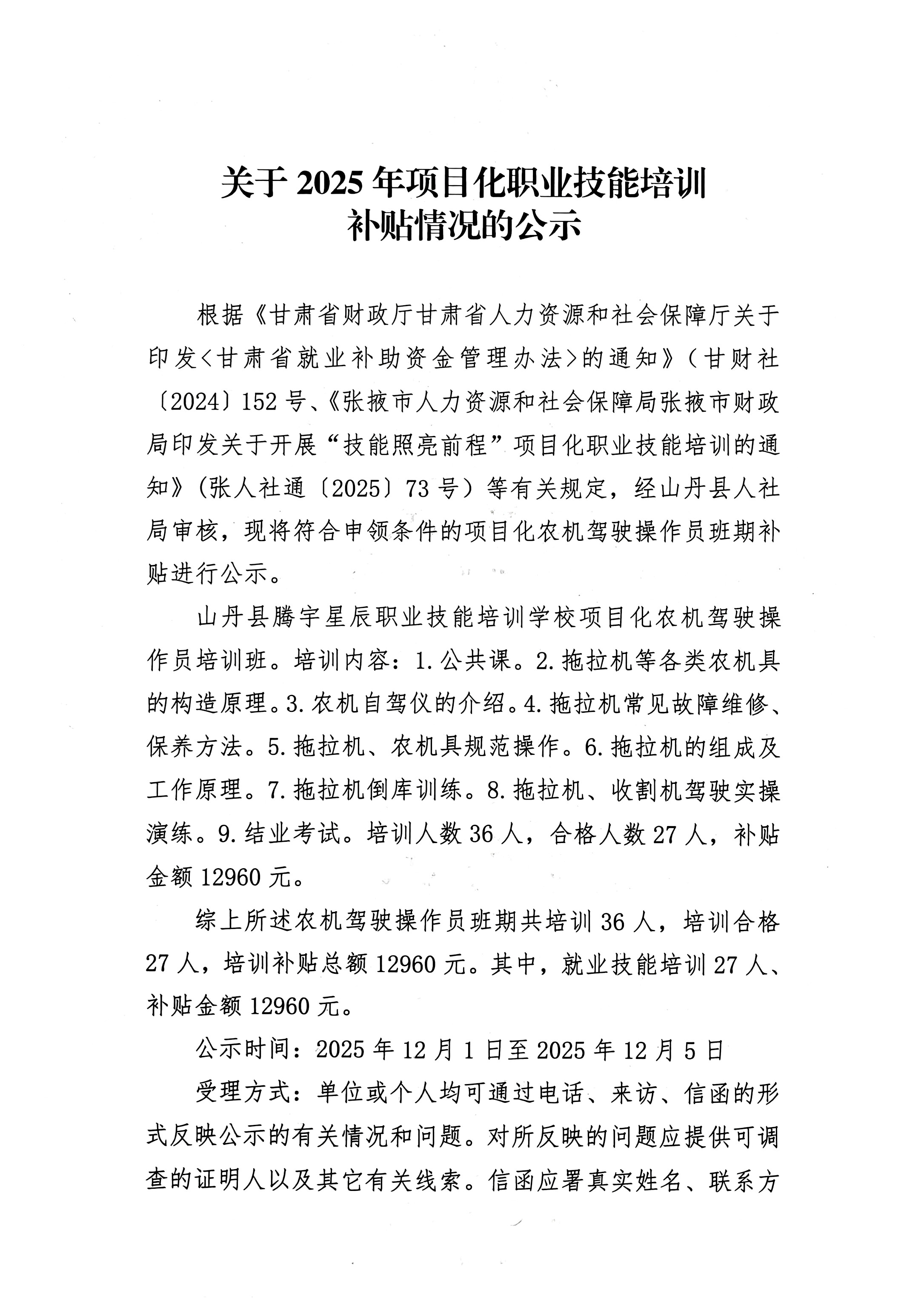 关于2025年项目化职业技能培训补贴情况的公示