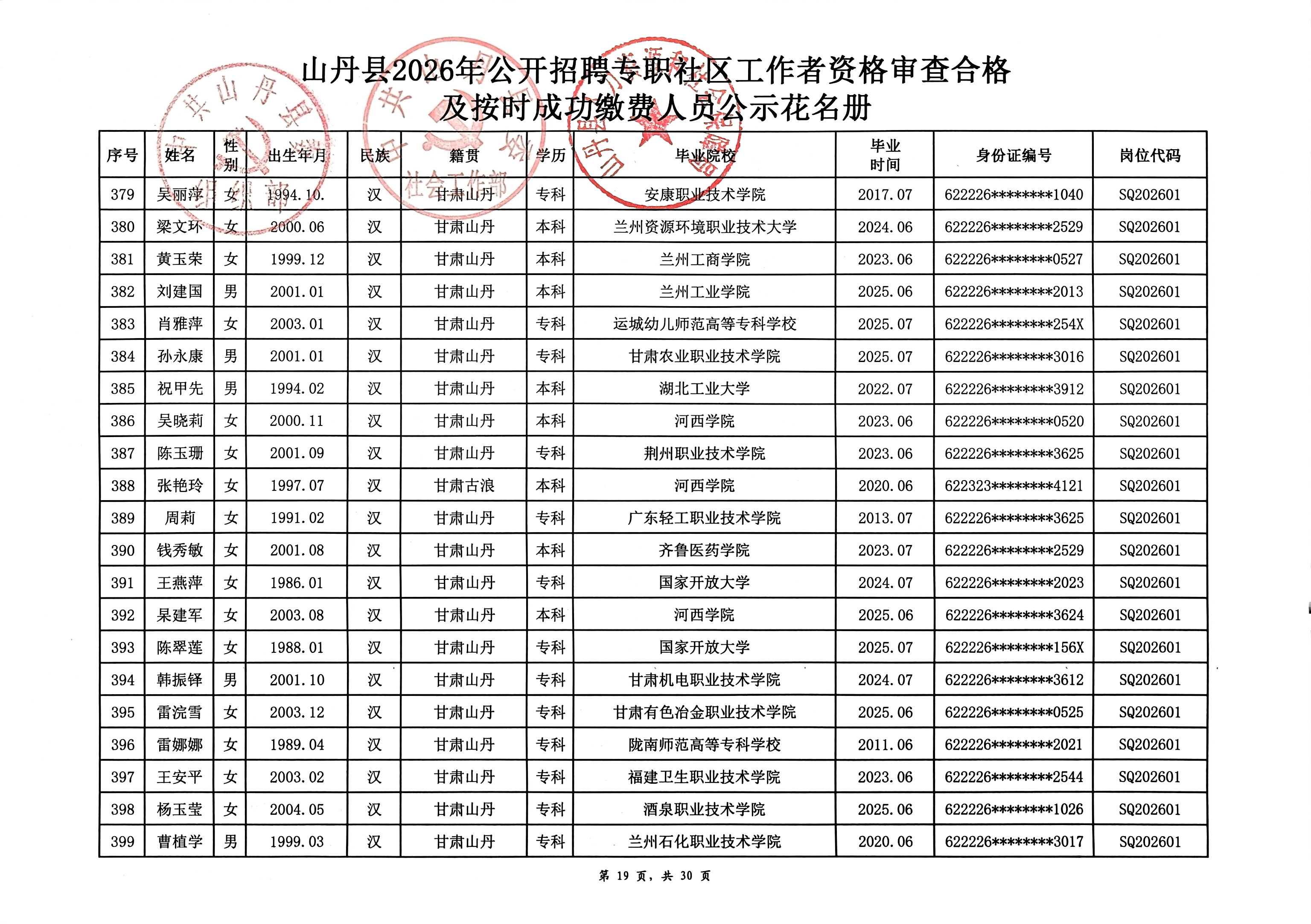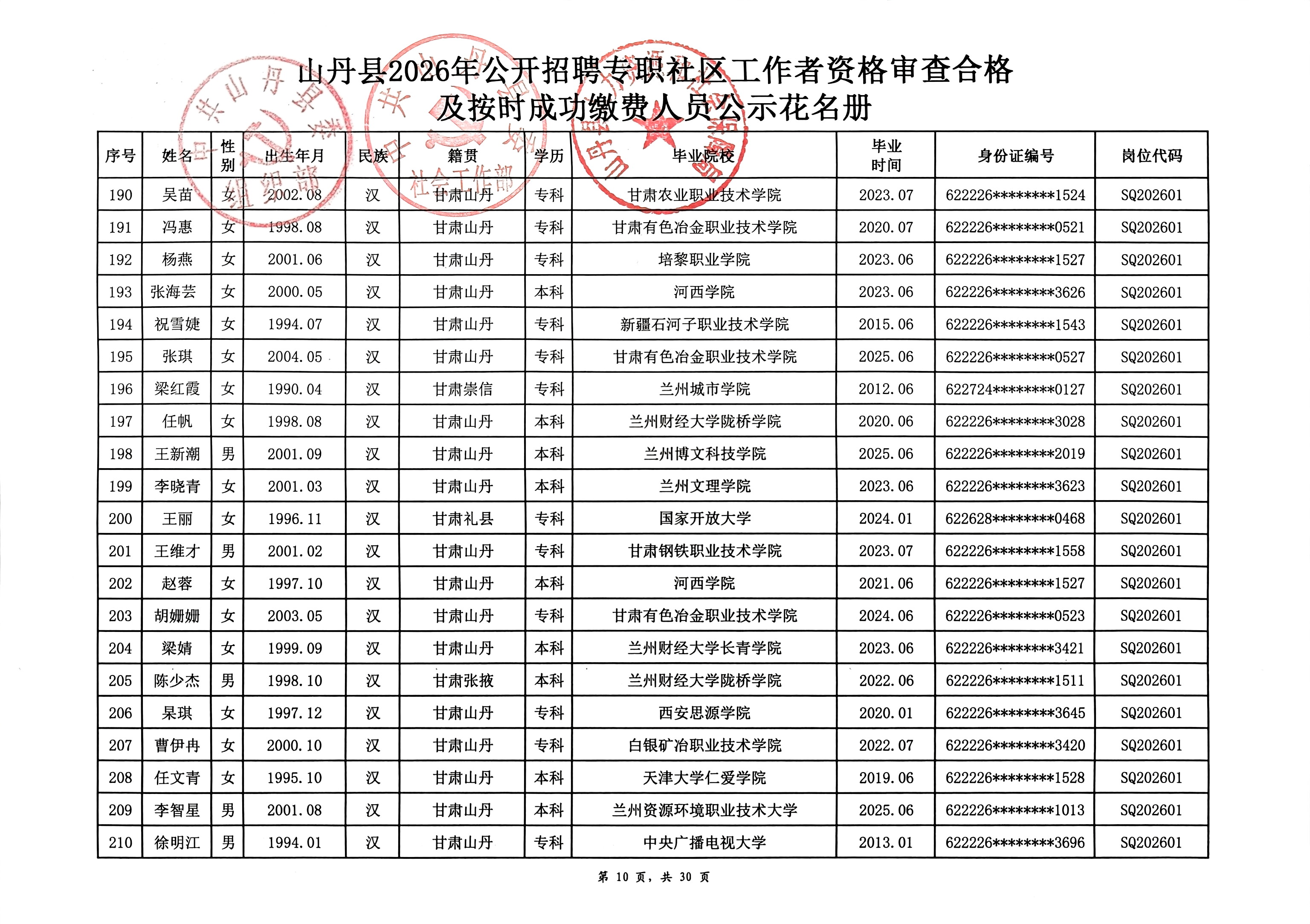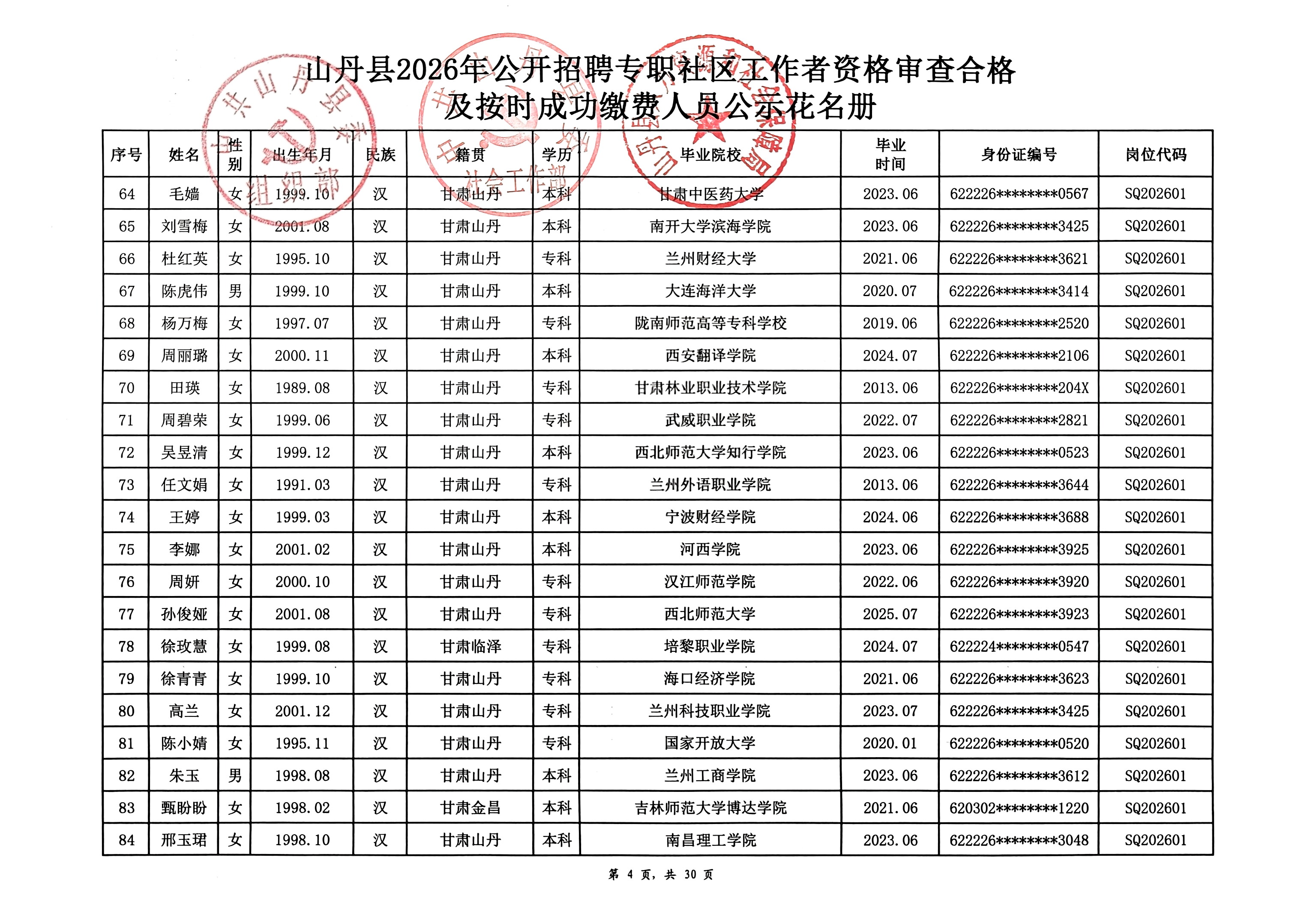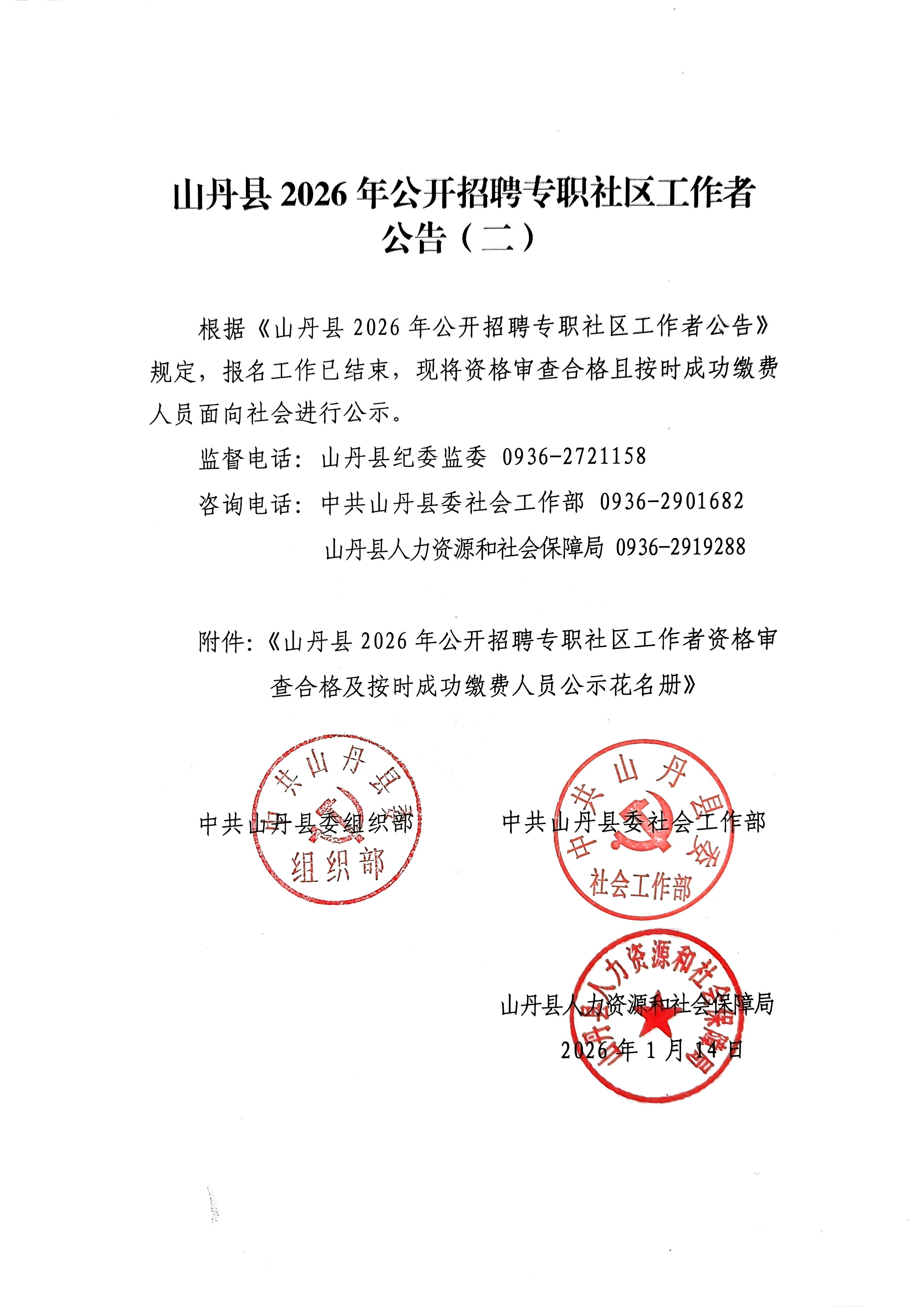山丹县2026年公开招聘专职社区工作者公告(二)